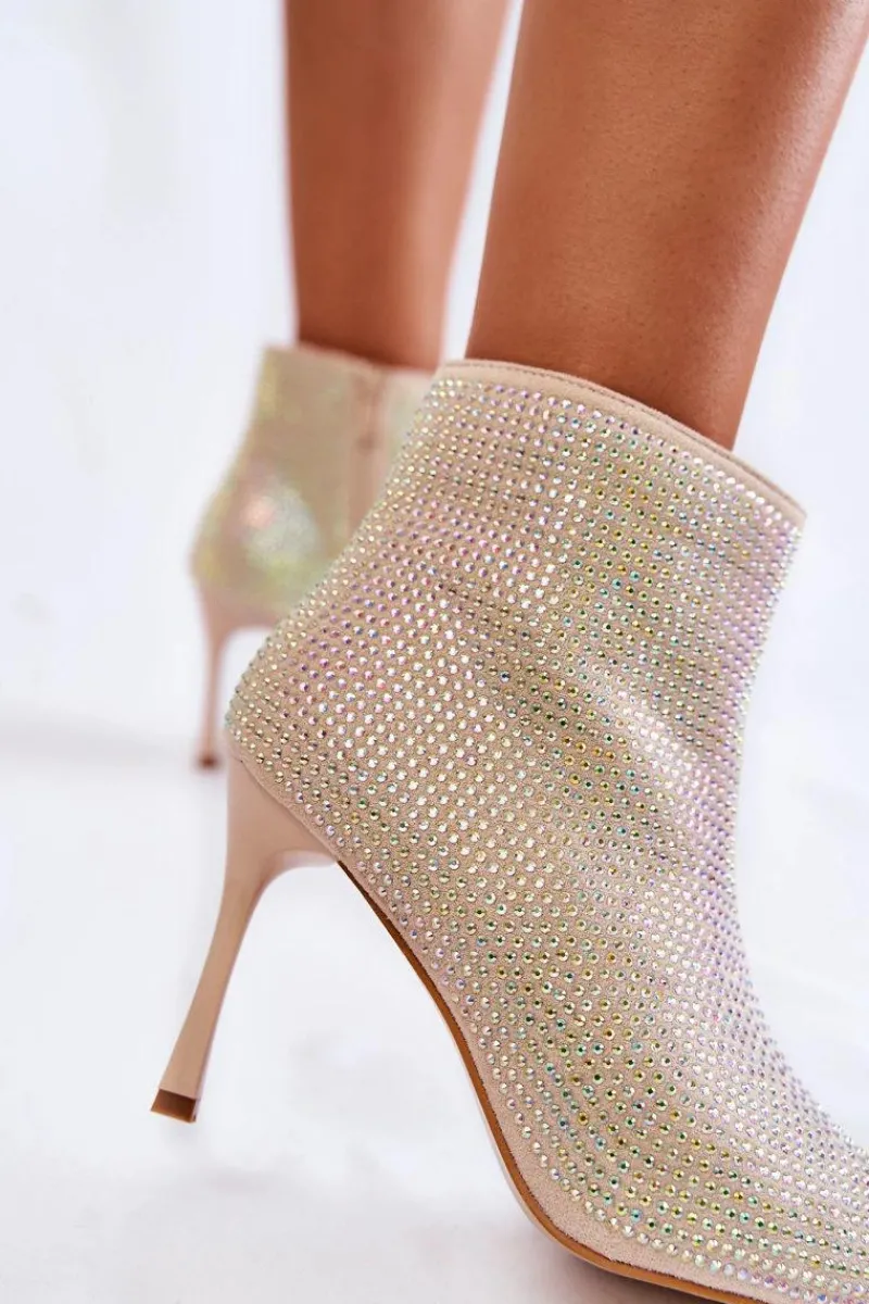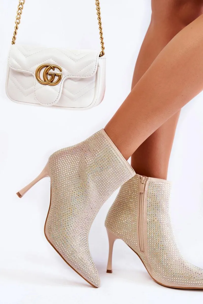 Brązowe I Beżowe Botki|Botki Na Obcasie>Boto Damskie Botki Na Szpilce Z Dżetami Beżowe Irma