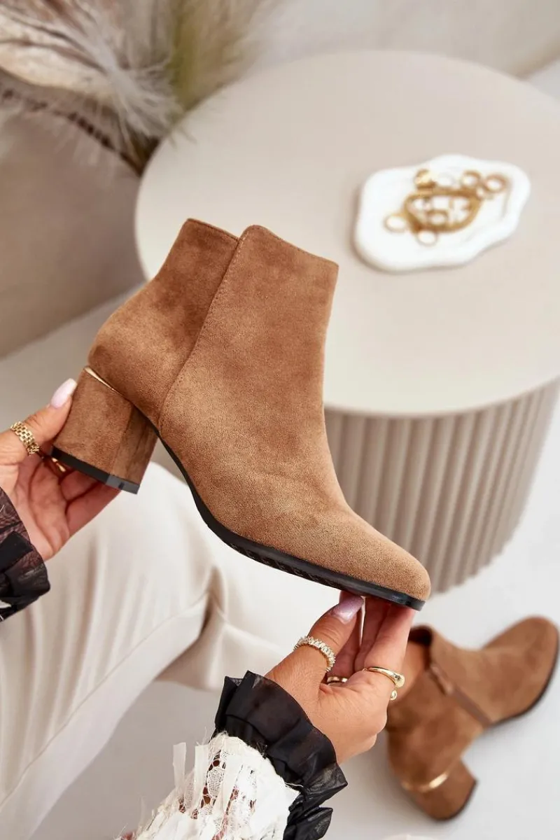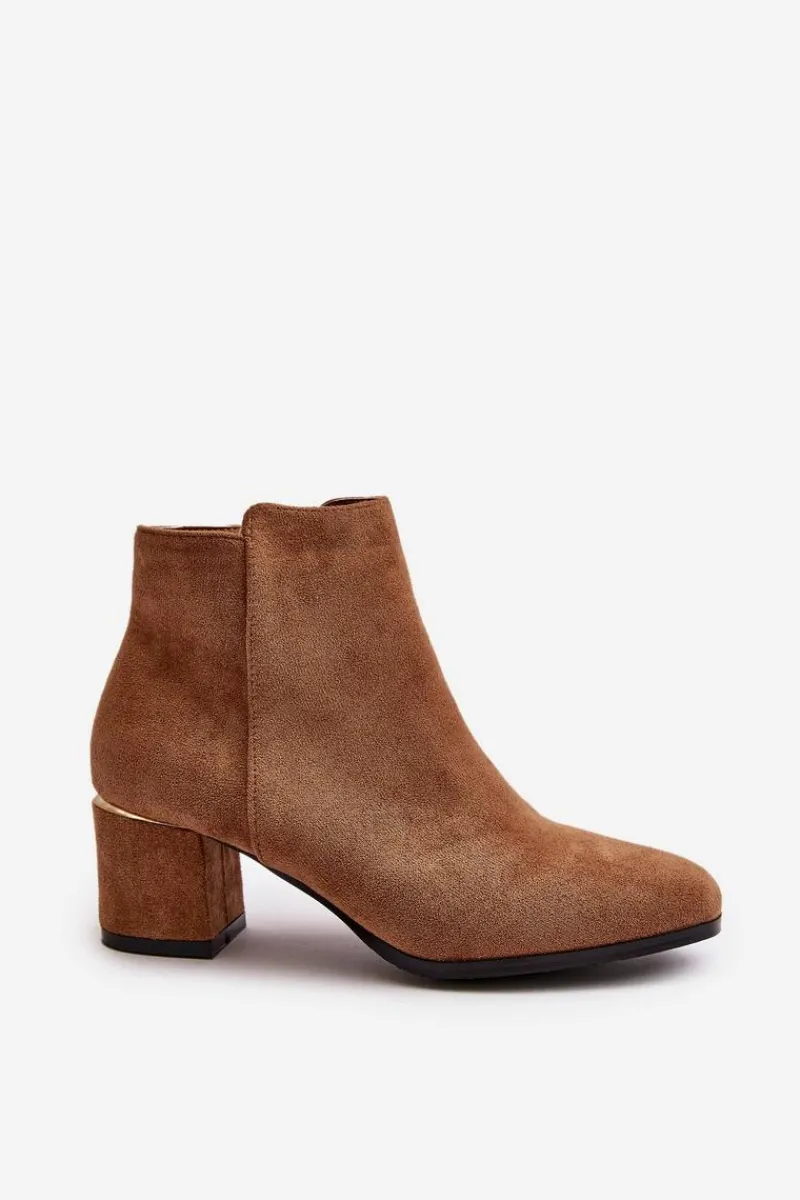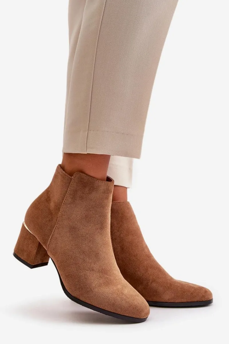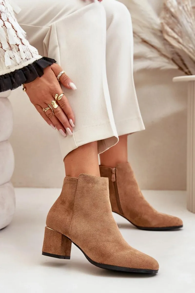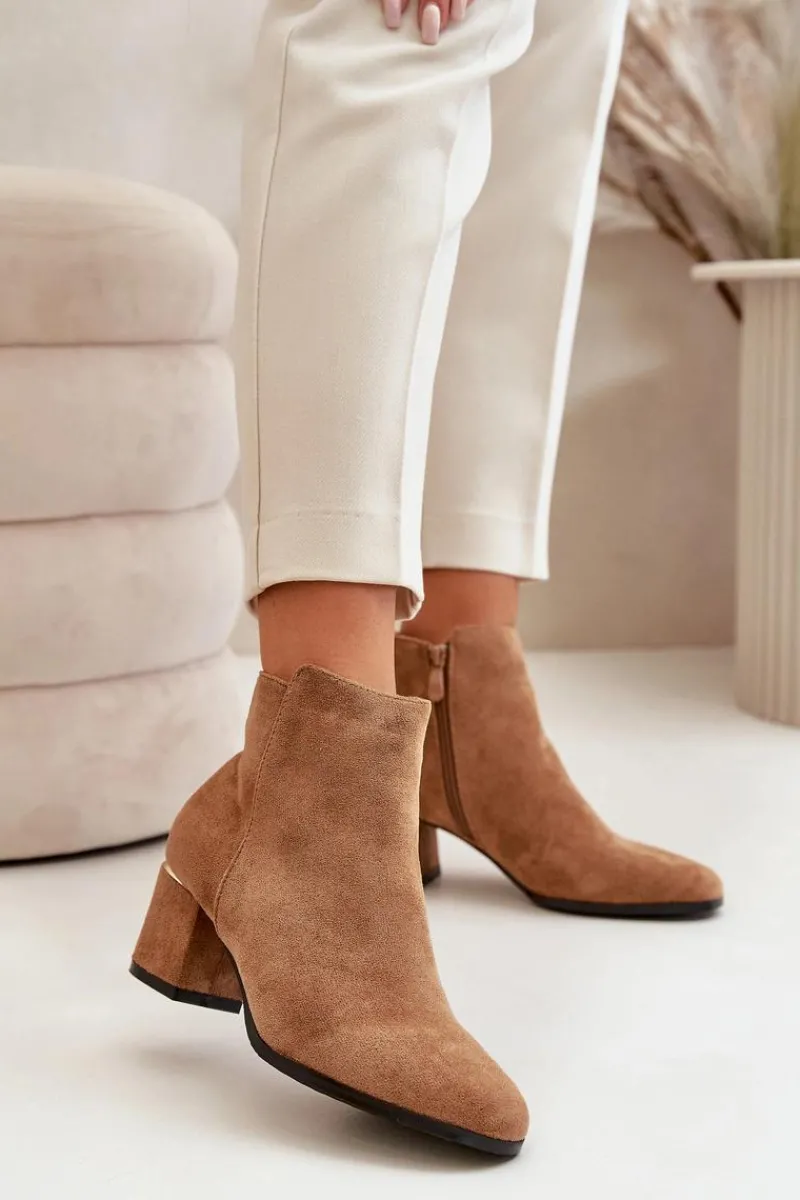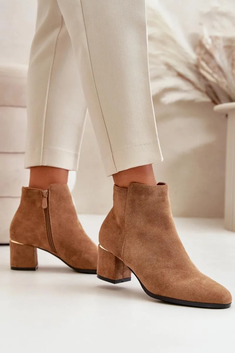 Klasyczne botki wykonane z eko zamszu, które wyróżniają się eleganckim i ponadczasowym stylem. Zapinane na zamek, co ułatwia ich zakładanie i zdejmowanie, oferują wygodę i praktyczność. Zaokrąglone noski dodają im subtelności, czyniąc je idealnym dodatkiem do wielu różnych stylizacji. Przy wyborze rozmiaru prosimy sugerować się tabelą rozmiarów.
