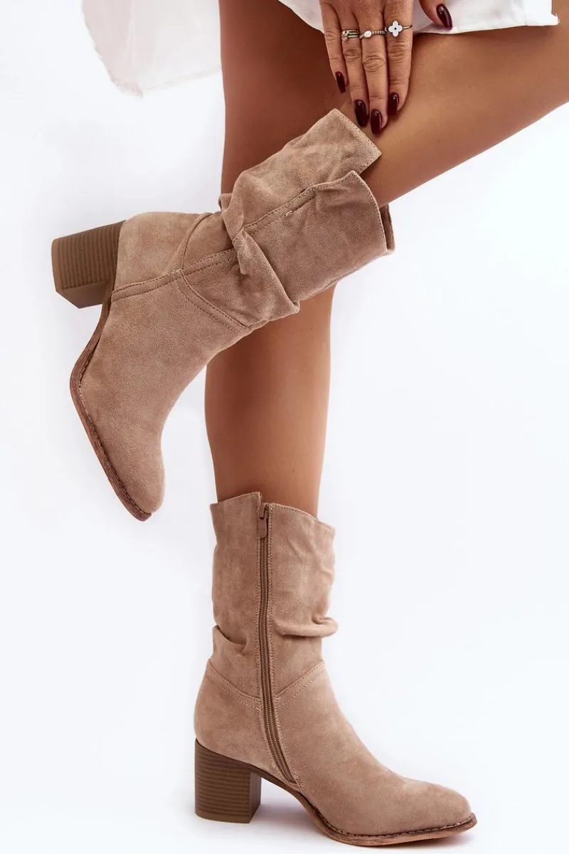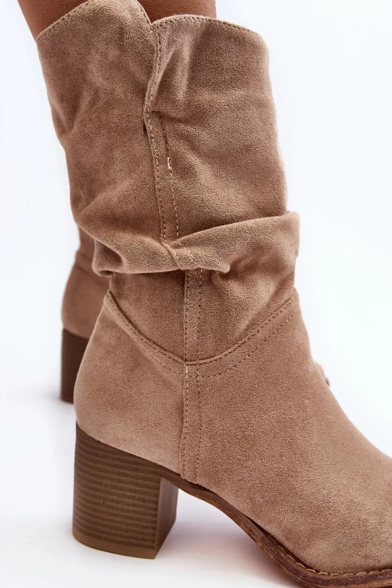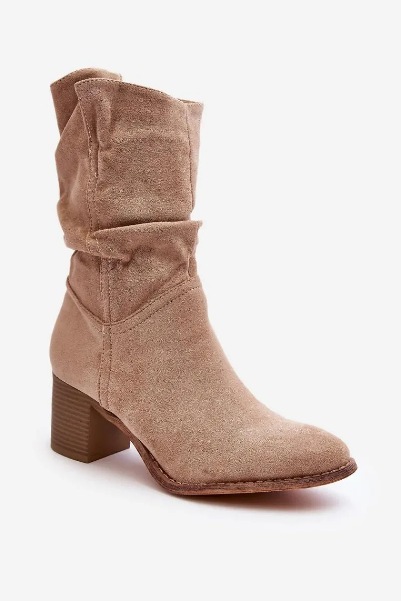 Damskie botki z marszczoną cholewką za kostkę. Wykonane z eko zamszu. Osadzone na obcasie w postaci słupka. Noski w migdał. Środek ocieplony kocem obuwniczym. Zapinane na suwak z boku. Model ten dopasujesz do wielu stylizacji. Koniecznie powinnaś je mieć! Przy wyborze rozmiaru prosimy sugerować się tabelą rozmiarów.