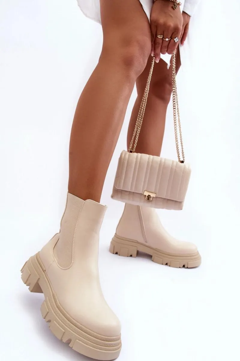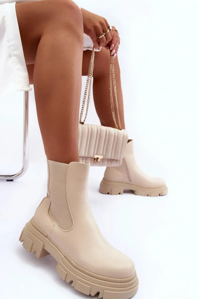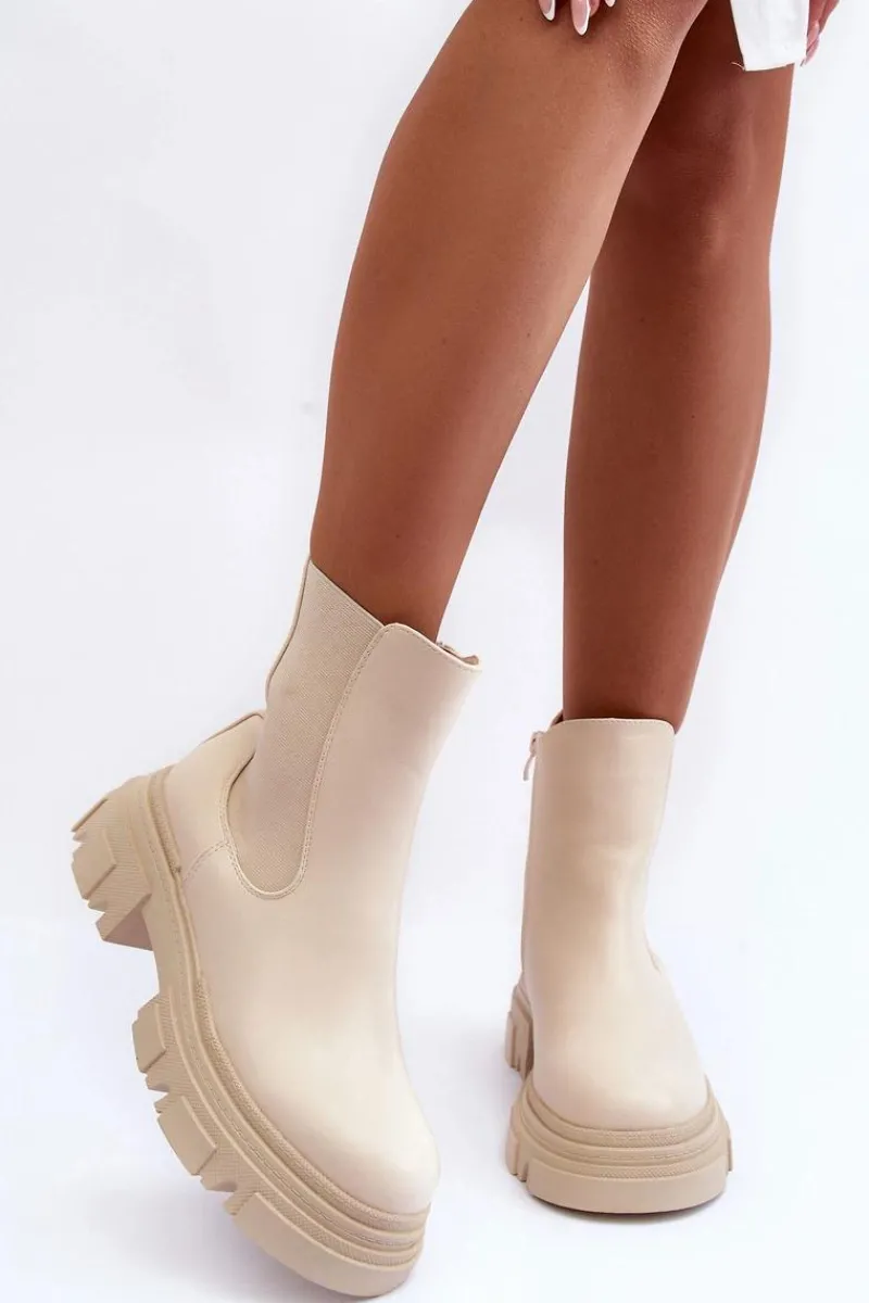 Brązowe I Beżowe Botki|Botki Płaskie>Boto Skórzane Botki Sztyblety Na Płaskim Obcasie i Platformie Jasnobeżowe Solita
