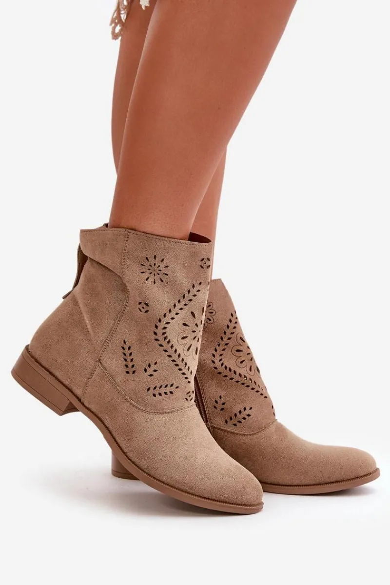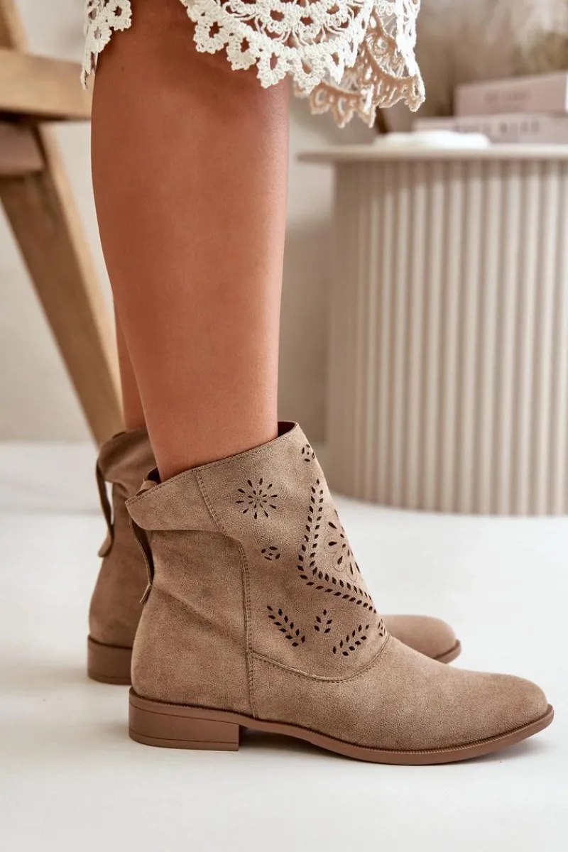 Damskie botki od marki Jezzi to stylowy i funkcjonalny wybór na różne okazje. Wykonane z dbałością o detale, charakteryzują się ażurową cholewką, która sięga za kostkę, nadając im lekkości i elegancji. Botki są zapinane na zamek, co ułatwia szybkie zakładanie i zdejmowanie, a także zapewnia pewne dopasowanie do stopy. Ażurowy wzór dodaje uroku. Wkładka z naturalnej skóry zapewni wygodę. Doskonałe do noszenia zarówno na co dzień, jak i na bardziej formalne okazje, stanowią idealne uzupełnienie wielu stylizacji. Przy wyborze rozmiaru prosimy sugerować się tabelą rozmiarów.