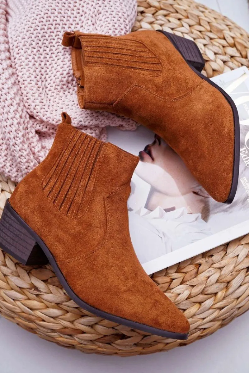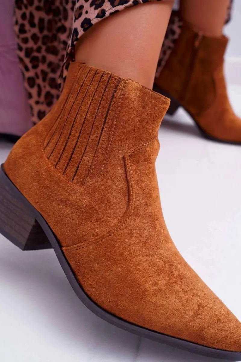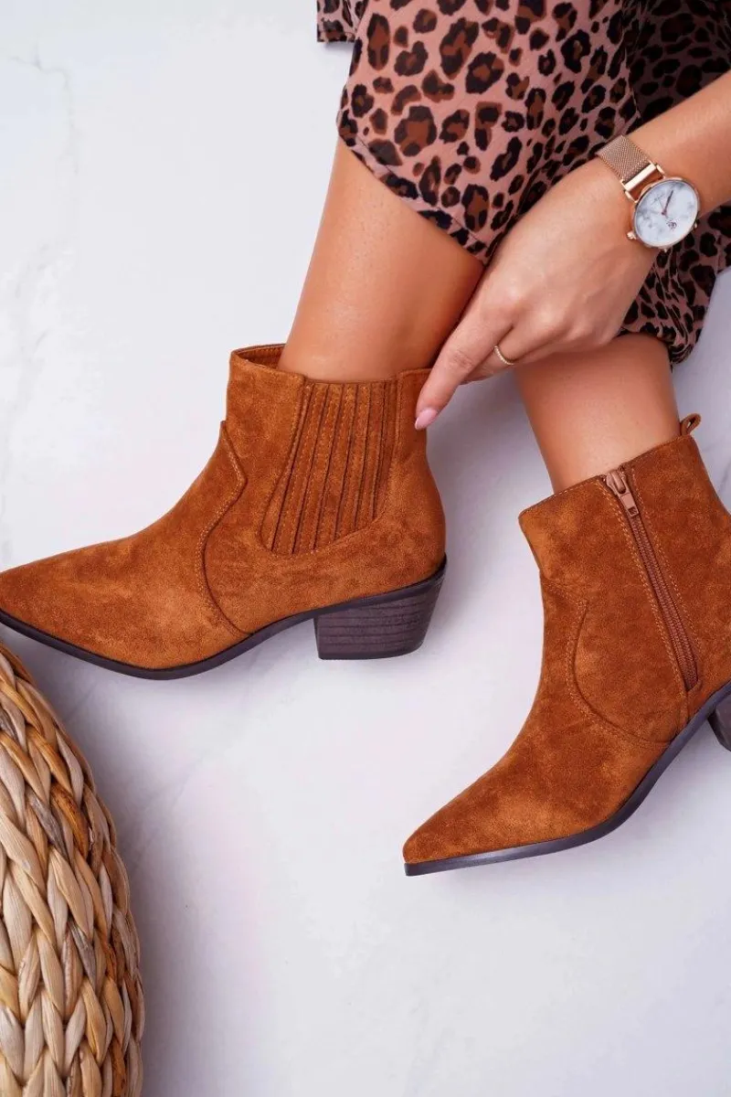 Brązowe I Beżowe Botki|Botki Zamszowe>Boto Botki Damskie Płaski Obcas Camel Umberco