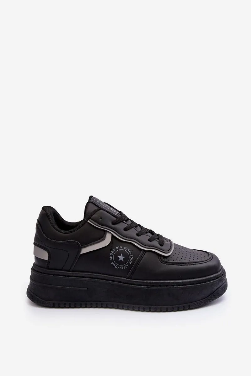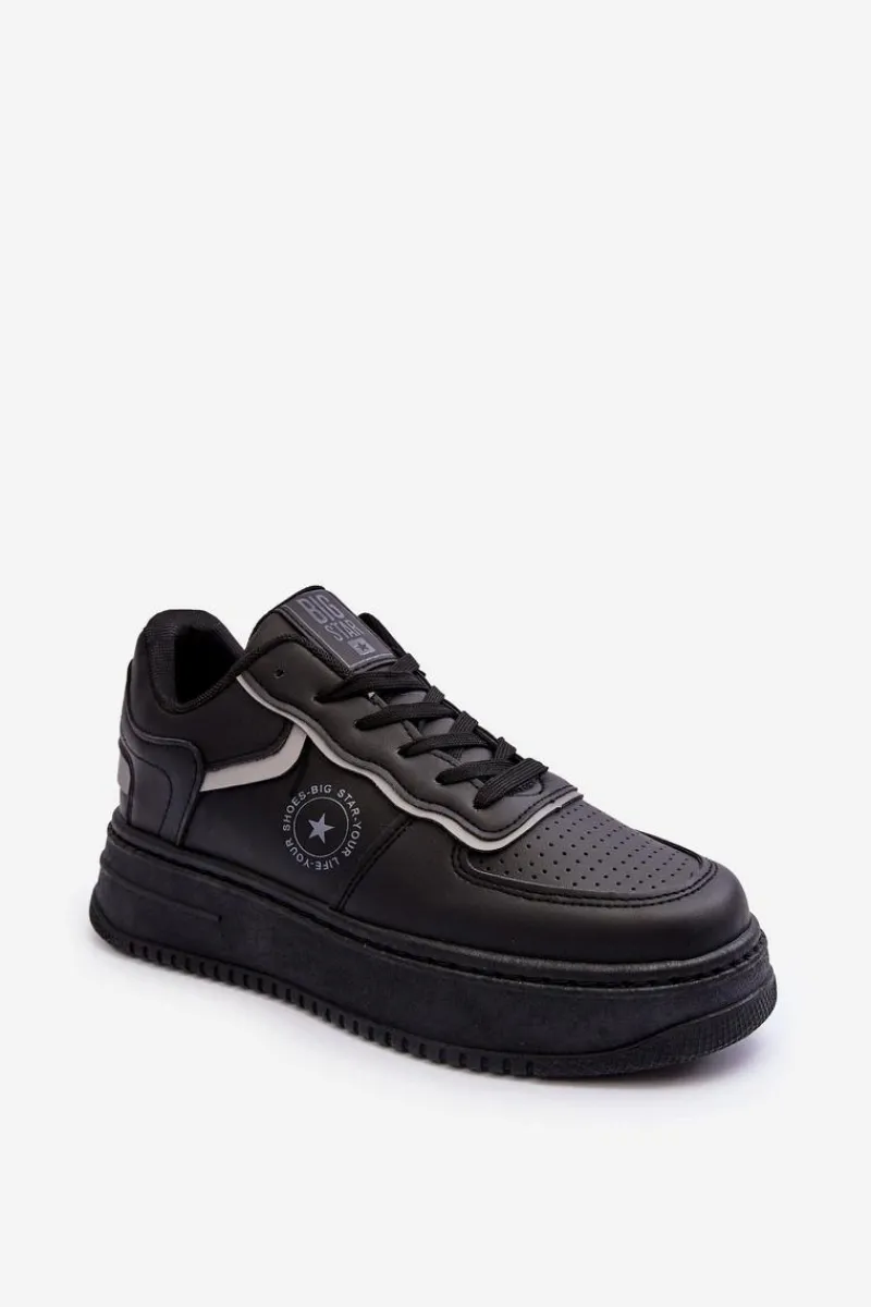 Buty sportowe damskie od marki Big Star. Wykonane z eko skóry. Osadzone na masywnej gumowej podeszwie. Model klasycznie sznurowany. Na cholewce logo marki. Miękka, materiałowa wkładka zapewni komfort podczas użytkowania. Przy wyborze rozmiaru prosimy sugerować się tabelą rozmiarów.