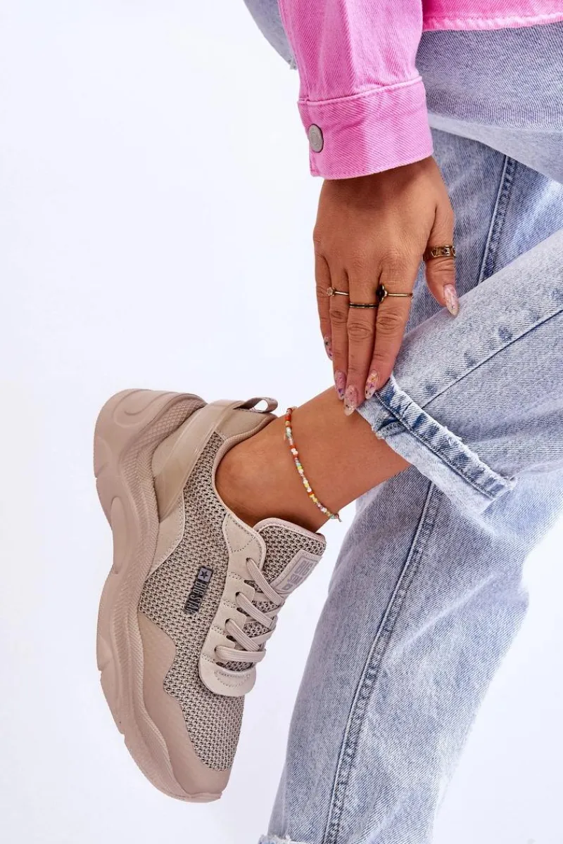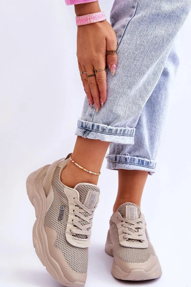 Damskie sneakersy marki Big Star zostały wykonane z połączenia tkaniny oraz eko skóry. Buty posiadają także wzmocniony zapiętek. Sneakersy posiadają wkładkę Memory Foam System, która zapamiętuje kształt stopy, zapewnia doskonałe dopasowanie, absorbuje wstrząsy, jest odporna na odkształcenia oraz pozwala na odparowanie wilgoci i regulację temperatury. Buty zostały osadzone na platformie i płaskim obcasie. Przy wyborze rozmiaru prosimy sugerować się tabelą rozmiarów.