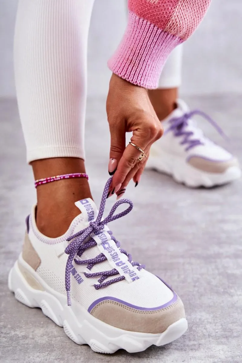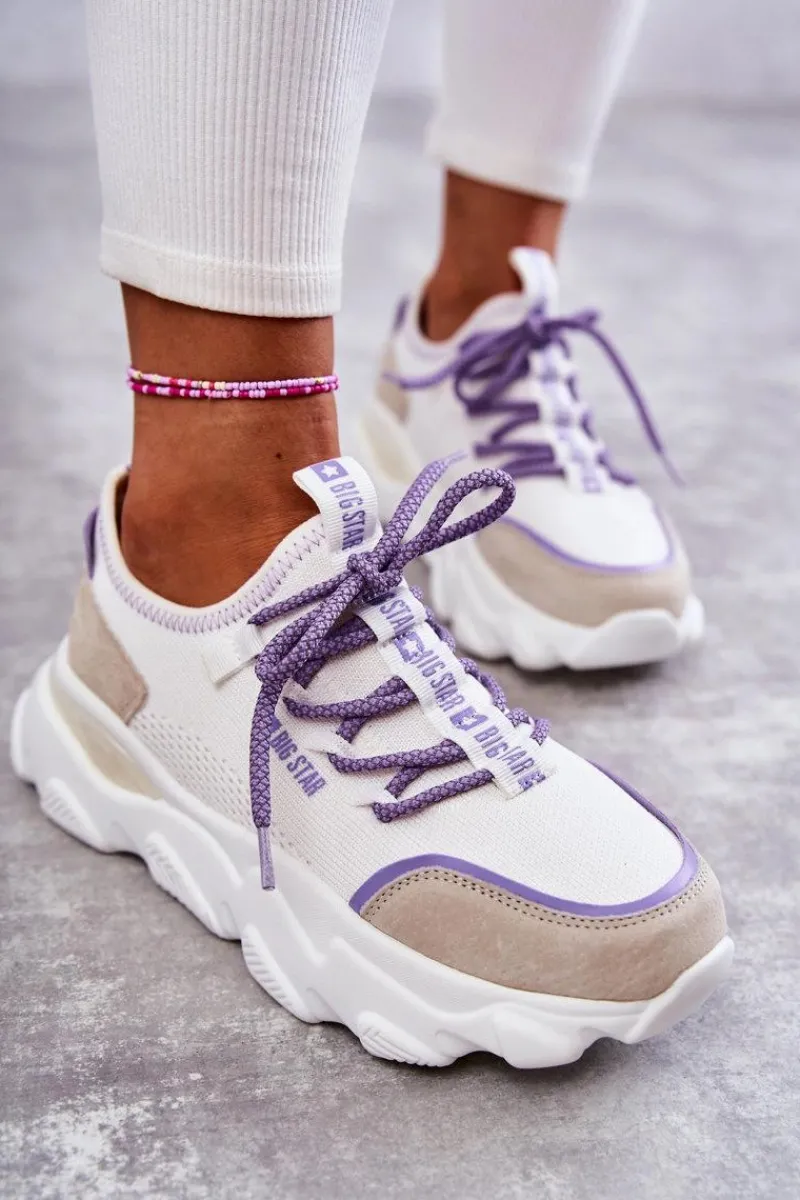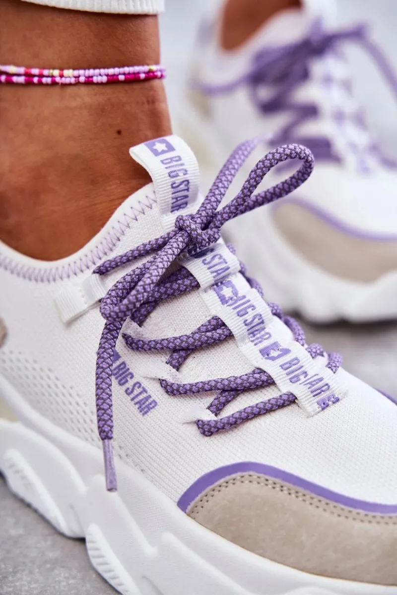 Modne sneakersy marki Big Star zostały wykonane z przewiewnej, a zarazem elastycznej tkaniny. Dodatkowo posiadają wstawki z eko skóry oraz eko zamszu. Model wsuwany ze sznurowaniem. Wkładka Memory Foam System zapamiętuje kształt stopy, zapewnia doskonałe dopasowanie, absorbuje wstrząsy, jest odporna na odkształcenia oraz pozwala na odparowanie wilgoci i regulację temperatury. Buty te zostały osadzone na masywnej platformie. Posiadają usztywniany zapiętek. Przy wyborze rozmiaru prosimy sugerować się tabelą rozmiarów.