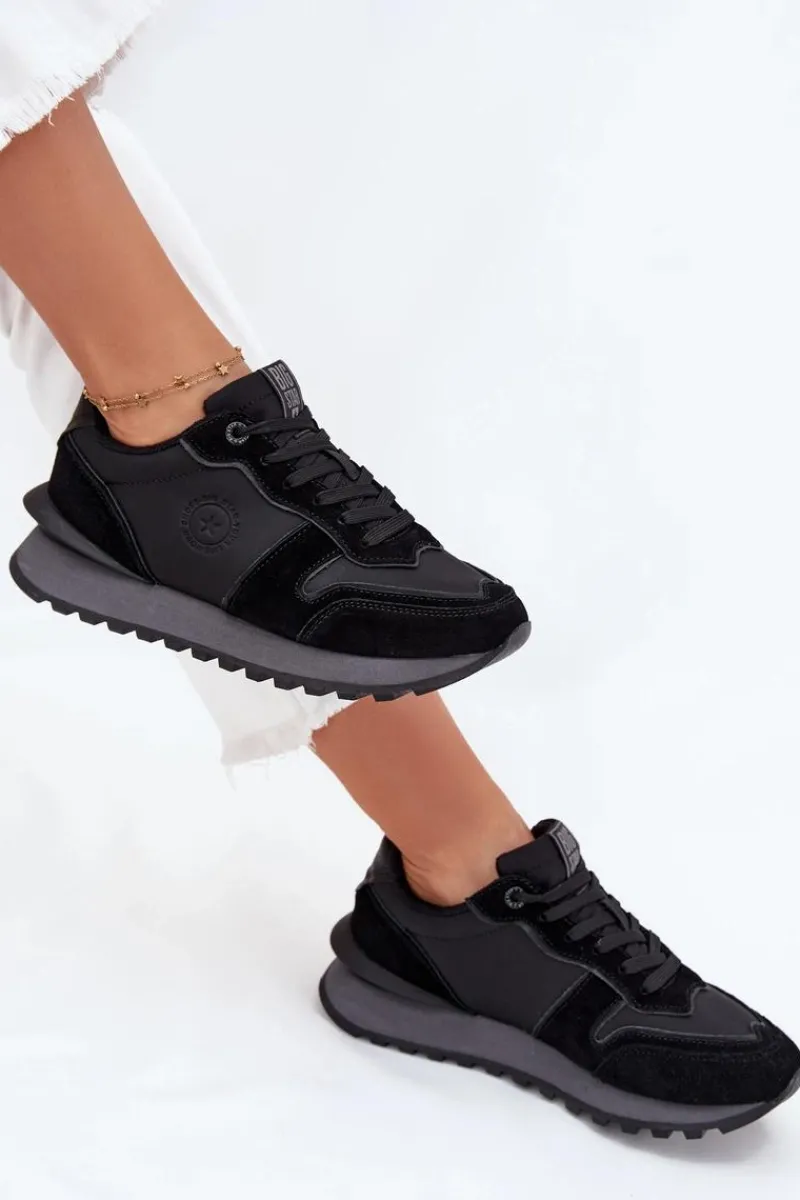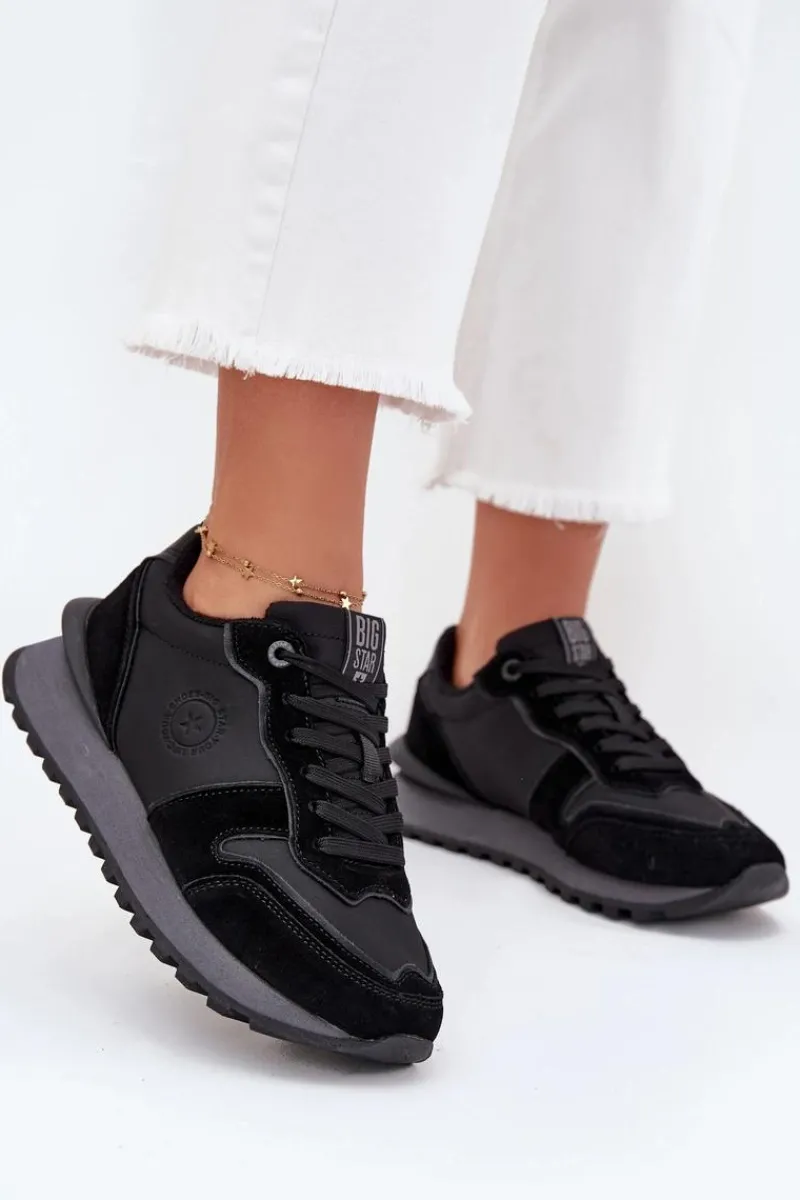 Sneakersy damskie marki Big Star. Wykonane z naturalnej skóry i zamszu, oferują modny wygląd i wyjątkowy komfort. Osadzone na platformie, zapewniają wygodę i optycznie wydłużają nogi. Model ten wyróżnia się innowacyjną wkładką HI-POLY SYSTEM, wykonaną z materiałów pochodzących z recyklingu. Wkładka zapewnia doskonałą oddychalność, skuteczną absorpcję wilgoci oraz amortyzację wstrząsów, co sprawia, że buty są wygodne i komfortowe przez cały dzień. Dodatkowo jest odporna na ścieranie i odkształcenia, co zapewnia ich trwałość. Idealne na co dzień. Przy wyborze rozmiaru prosimy sugerować się tabelą rozmiarów.