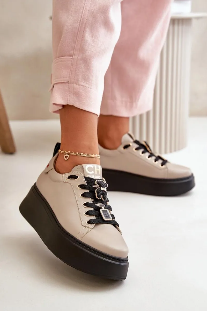 Sneakersy damskie wykonane ze skóry naturalnej to doskonały wybór dla miłośniczek mody i wygody. Osadzone na platformie, zapewniają dodatkowy komfort i lekkość podczas noszenia. Ich zaokrąglone noski dodają całości delikatności i uniwersalnego charakteru. Model ten wyróżnia się modnymi, ozdobnymi przypinkami na sznurowaniach, które nadają oryginalny wygląd. Te sneakersy doskonale sprawdzą się zarówno w casualowych, jak i bardziej eleganckich stylizacjach, będąc stylowym dodatkiem do każdej garderoby! Przy wyborze rozmiaru prosimy sugerować się tabelą rozmiarów.