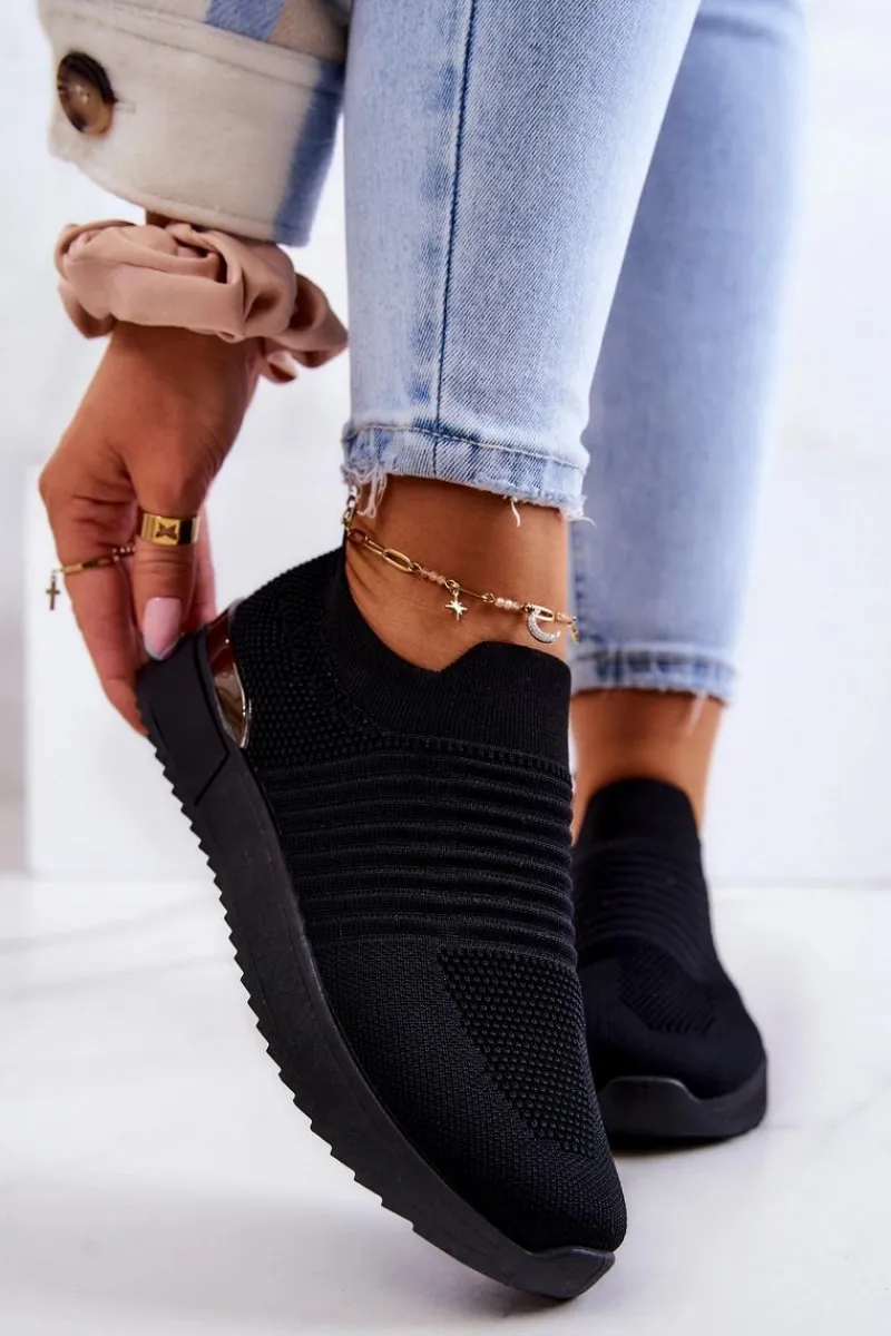 Buty sportowe z elastyczną cholewką odsłaniającą kostkę. Posiadają fakturę tworzącą efektowny wzór. Ozdobione przy podeszwie lustrzanym elementem. Osadzone na delikatnej platformie. W środku umiejscowiono amortyzującą, wyjmowaną wkładkę. Wykonane z materiału tekstylnego. Przy wyborze rozmiaru prosimy kierować się tabelą rozmiarów.