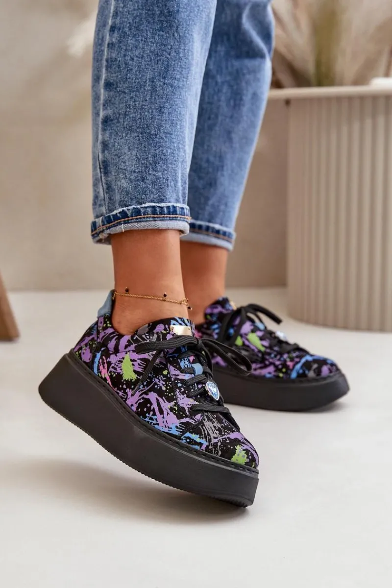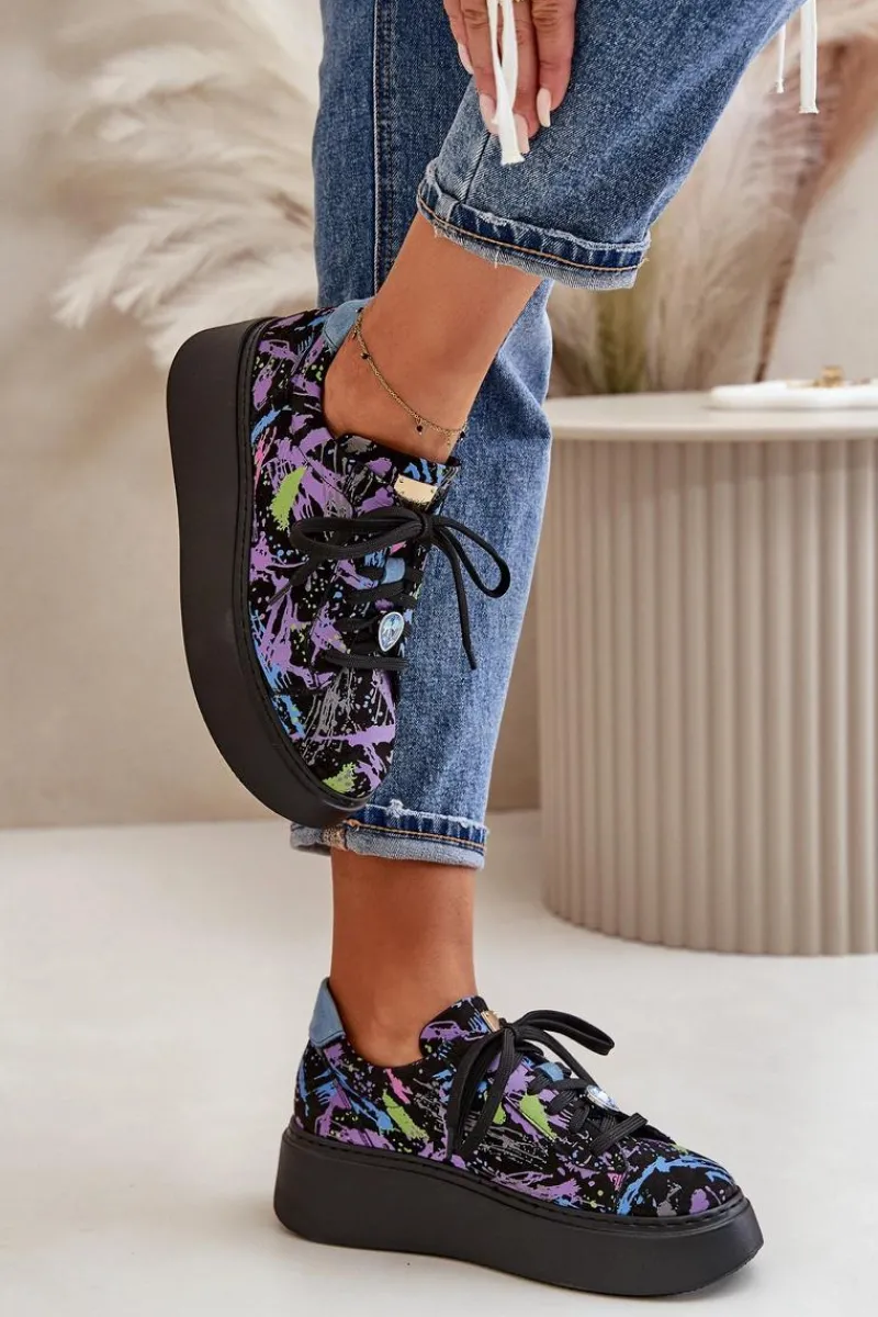 Buty sportowe marki Maciejka. Wykonane z naturalnej skóry z dbałością o szczegóły. Osadzone na masywnej platformie. Model klasycznie sznurowany z usztywnionym zapiętkiem. Noski zaokrąglone. Miękka, wkładka zapewni komfort podczas użytkowania. Na sznurówkach przypięta jest mała, biżuteryjna ozdoba. Przy wyborze rozmiaru prosimy sugerować się tabelą rozmiarów.