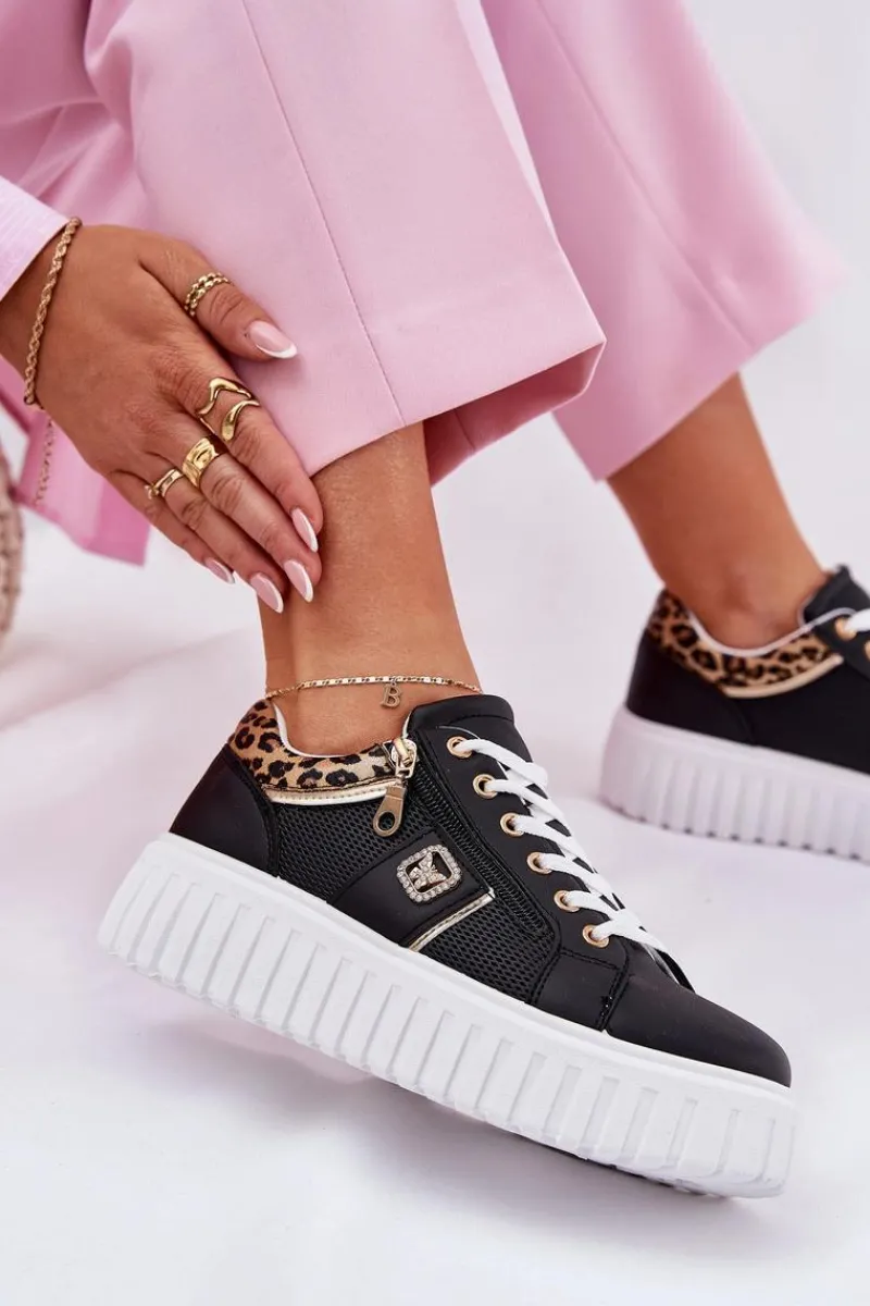 Buty sportowe z eko skóry na platformie to połączenie wygody i nowoczesnego stylu. Zaokrąglone noski zapewniają komfort, a cholewka z błyszczącym detalem oraz suwakiem na boku dodaje im modnego charakteru. Wyjmowana wkładka z pianki, pokryta materiałem, gwarantuje wygodę przez cały dzień. Te buty będą świetnym wyborem dla osób szukających zarówno funkcjonalności, jak i stylowego wyglądu. Przy wyborze rozmiaru prosimy kierować się tabelą rozmiarów.