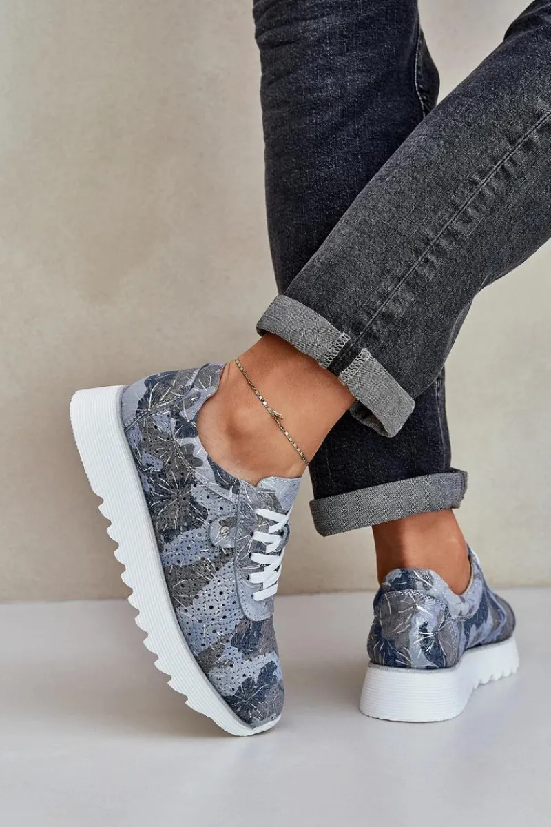Buty Sportowe Na Platformie|Sneakersy Damskie>Damskie buty S.Barski Zamszowe Wzorzyste Buty Sportowe Na Platformie Z Brokatem D&A LR51-635 e Niebieski