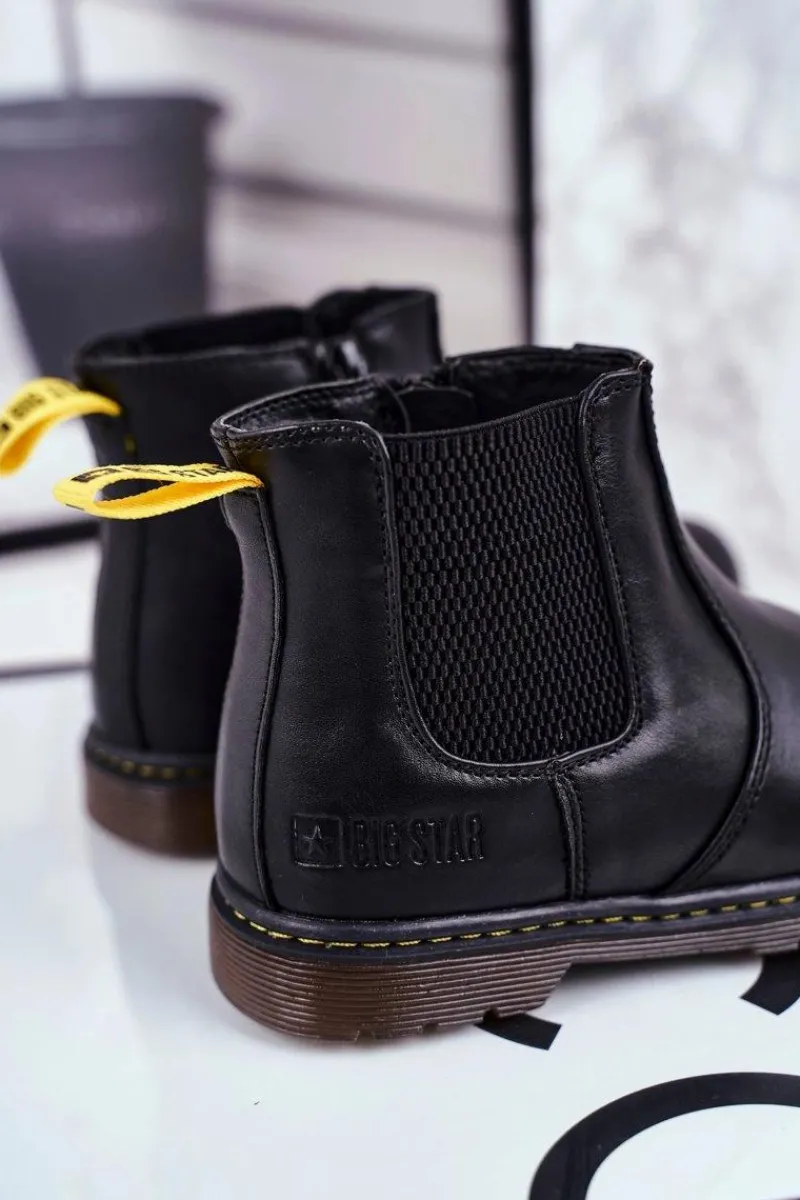 Best Big Star Shoes Skórzane Ocieplane Botki Workery Damskie Big Star OO274A387 Czarne