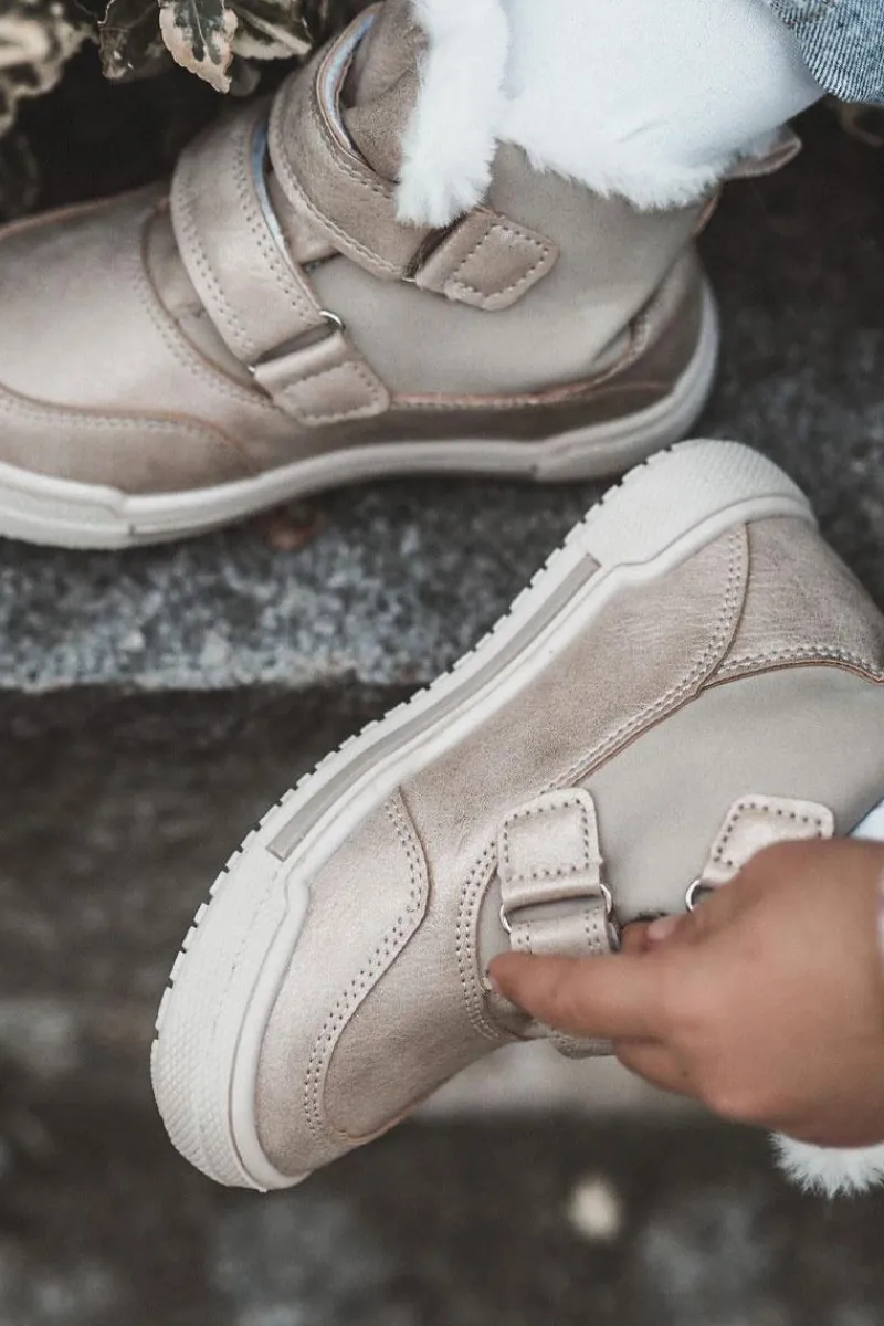 Idealne obuwie na zimę dla Twojej pociechy! Botki zostały wykonane z eko skóry. Posiadają także usztywniany zapiętek. Ocieplone w środku miłym w dotyku futerkiem. Botki zostały osadzone na platformie, co skutecznie ochroni przed zimnym podłożem. Model z zapinaniem na rzepy. Ten model powinien znaleźć się w szafie Twojego dziecka! Przy wyborze rozmiaru prosimy kierować tabelą rozmiarów.
