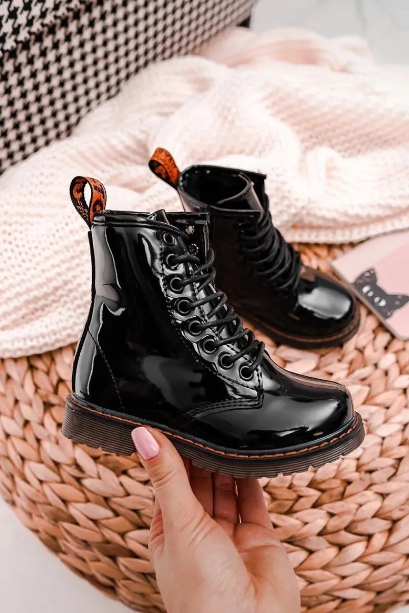 Chłopięce|Dziewczęce>Boto Dziecięce Botki Ocieplane z Suwakiem Lakierowane Czarne Goopy