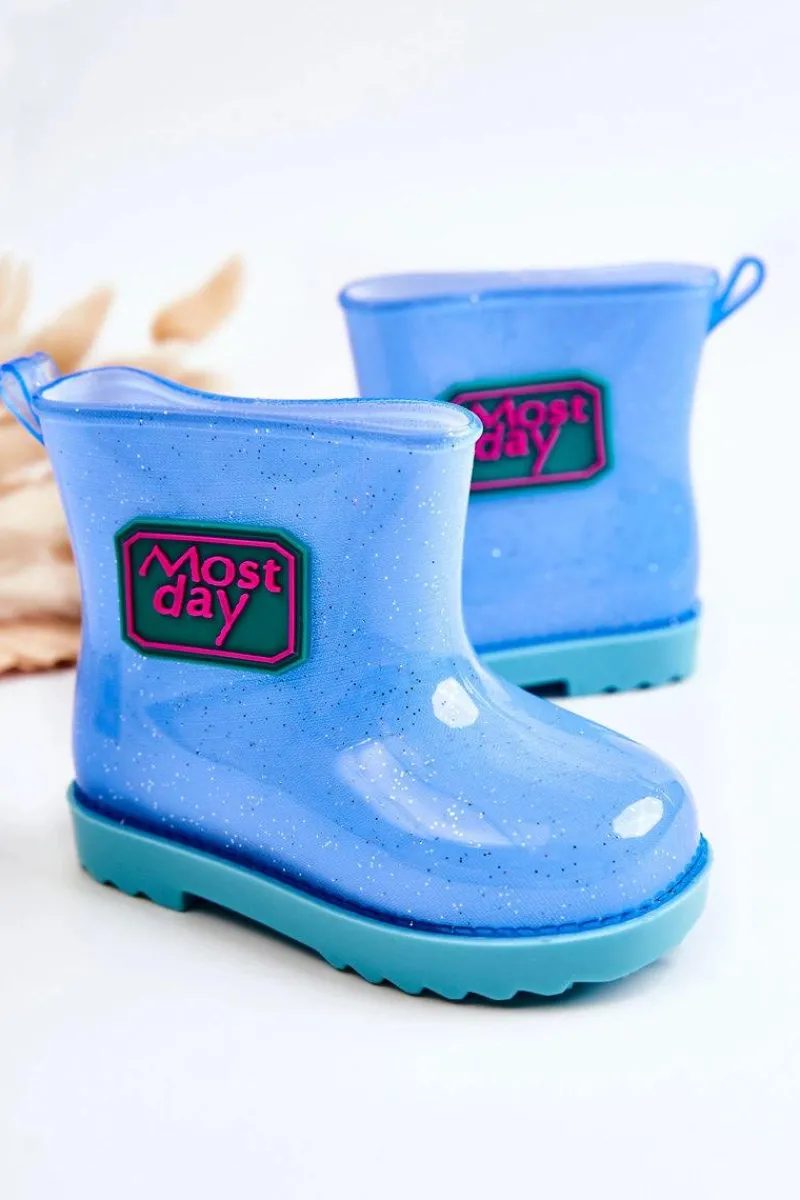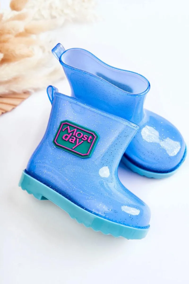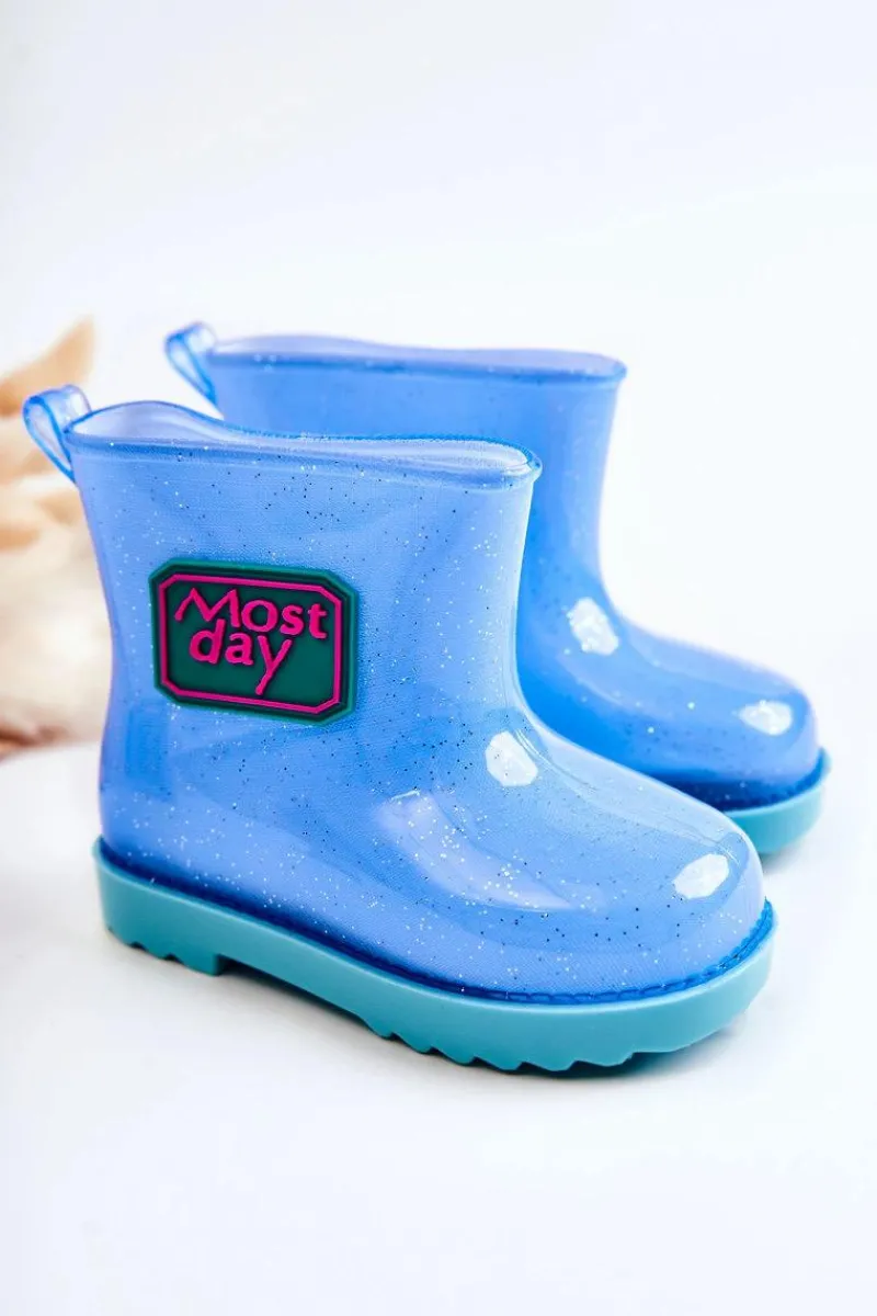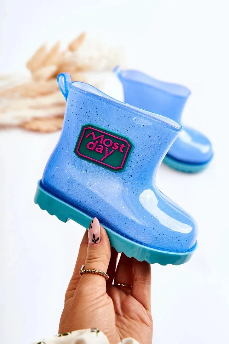 Kalosze dziecięce o świetnym fasonie zachwycą niejedną pociechę! Kałuże nie stanowią już problemu, tylko są pretekstem do zabaw! Wykonane z gumowego tworzywa z dodatkiem błyszczącego brokatu. Odaszone na miękkiej, gumowej podeszwie z płaskim obcasem. Dodatkowo posiadają wyjmowaną wkładkę. Klasyczny, wsuwany model. Z tyłu cholewki znajduje się pętelka ułatwiająca ściąganie obuwia. Koniecznie sprawdź pozostałe modele kaloszy! Przy wyborze rozmiaru prosimy sugerować się tabelą rozmiarów.