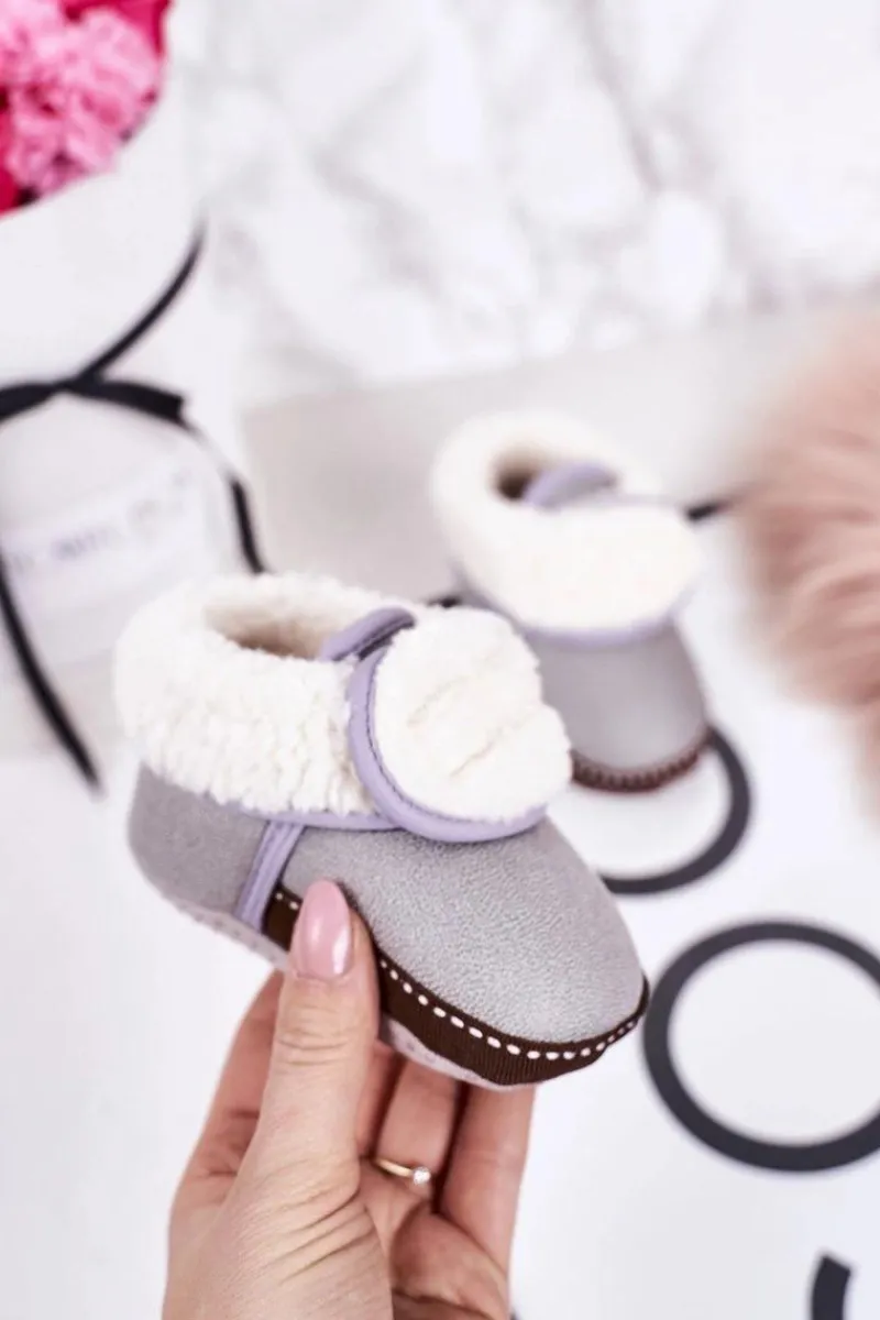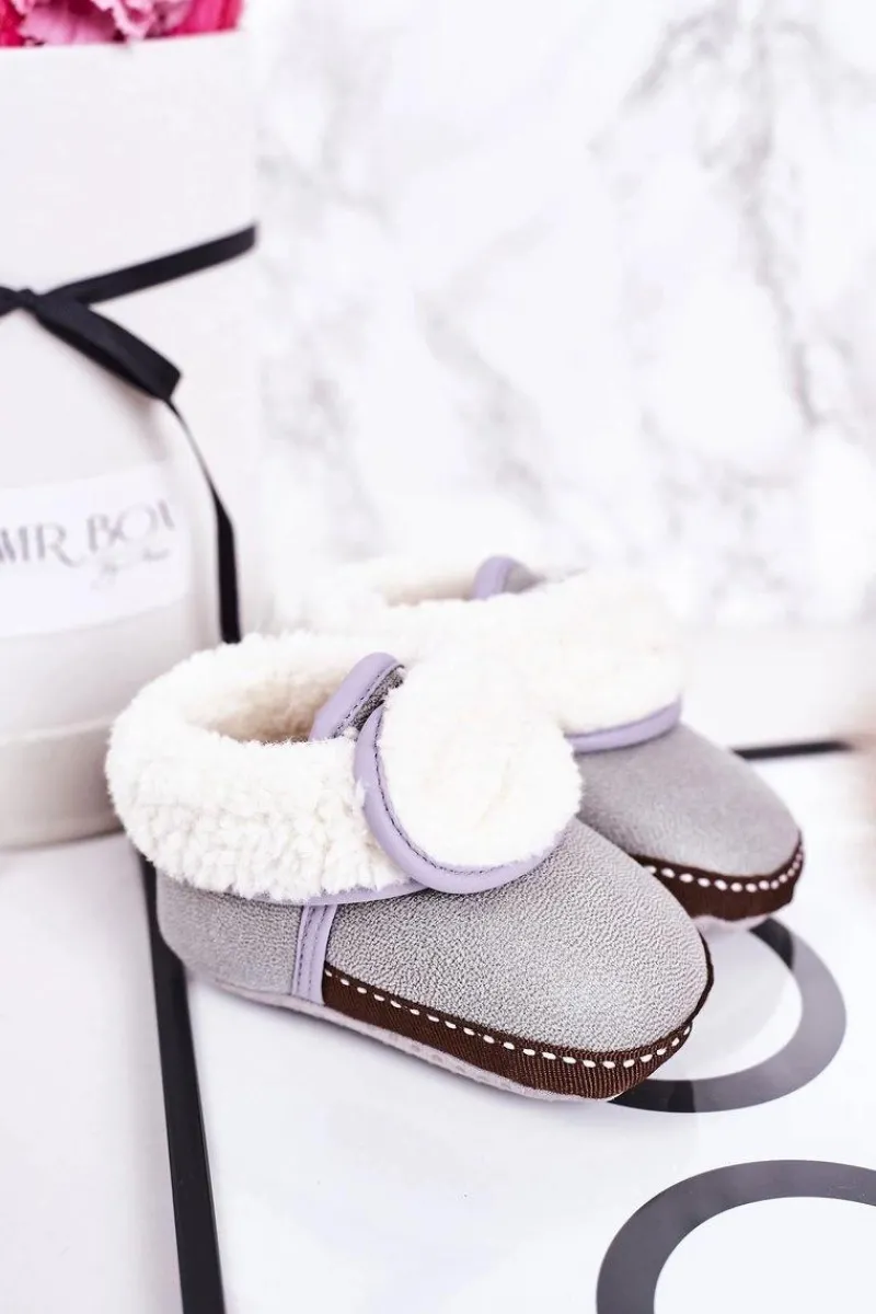 Chłopięce|Dziewczęce>Boto Dziecięce Ocieplane Papcie Z Kożuszkiem Szare Cloudlet