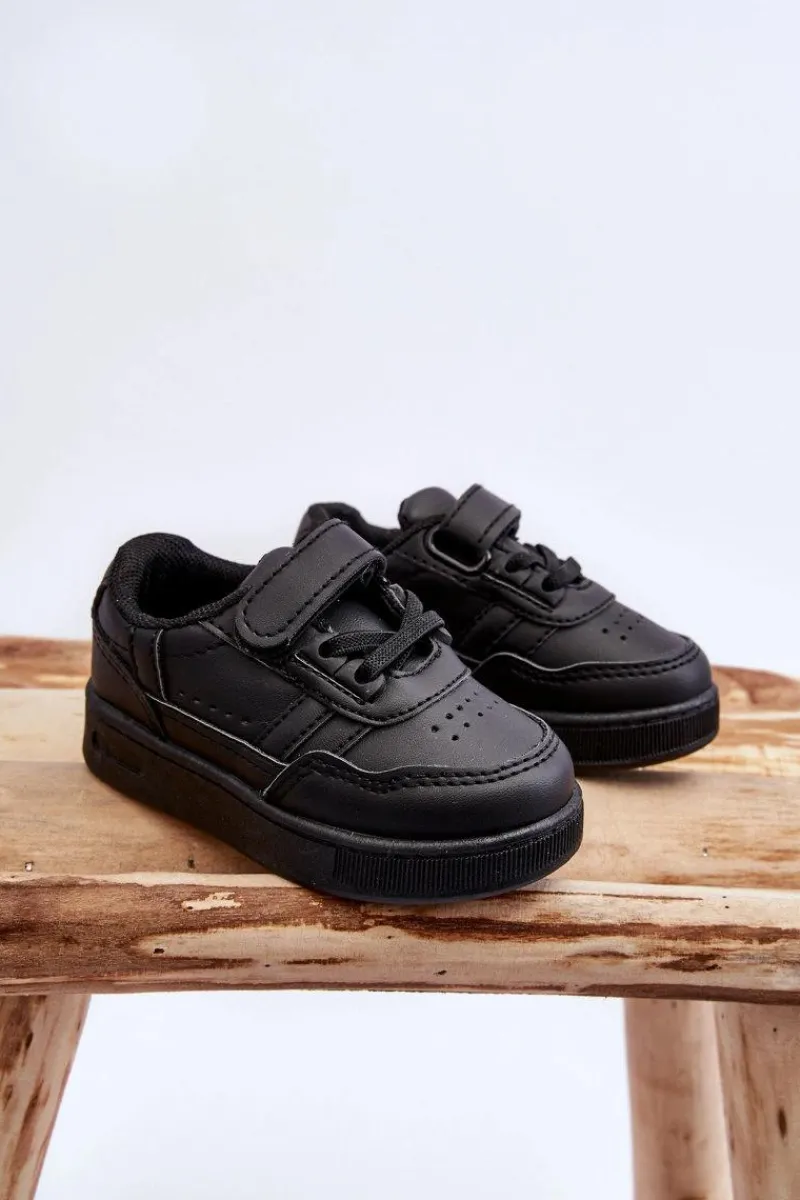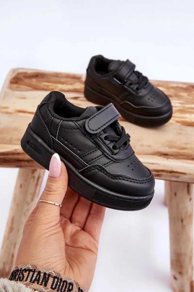 Dziecięce buty sportowe wykonane z eko skóry posiadają na przodzie delikatną perforację. Osadzone na platformie z tworzywa sztucznego. Wkładka została wykonana z materiału. Ten model z pewnością przypadnie do gustu Twojemu dziecku! Sneakersy posiadają zapinanie na rzep. Przy wyborze rozmiaru prosimy sugerować się tabelą rozmiarów.