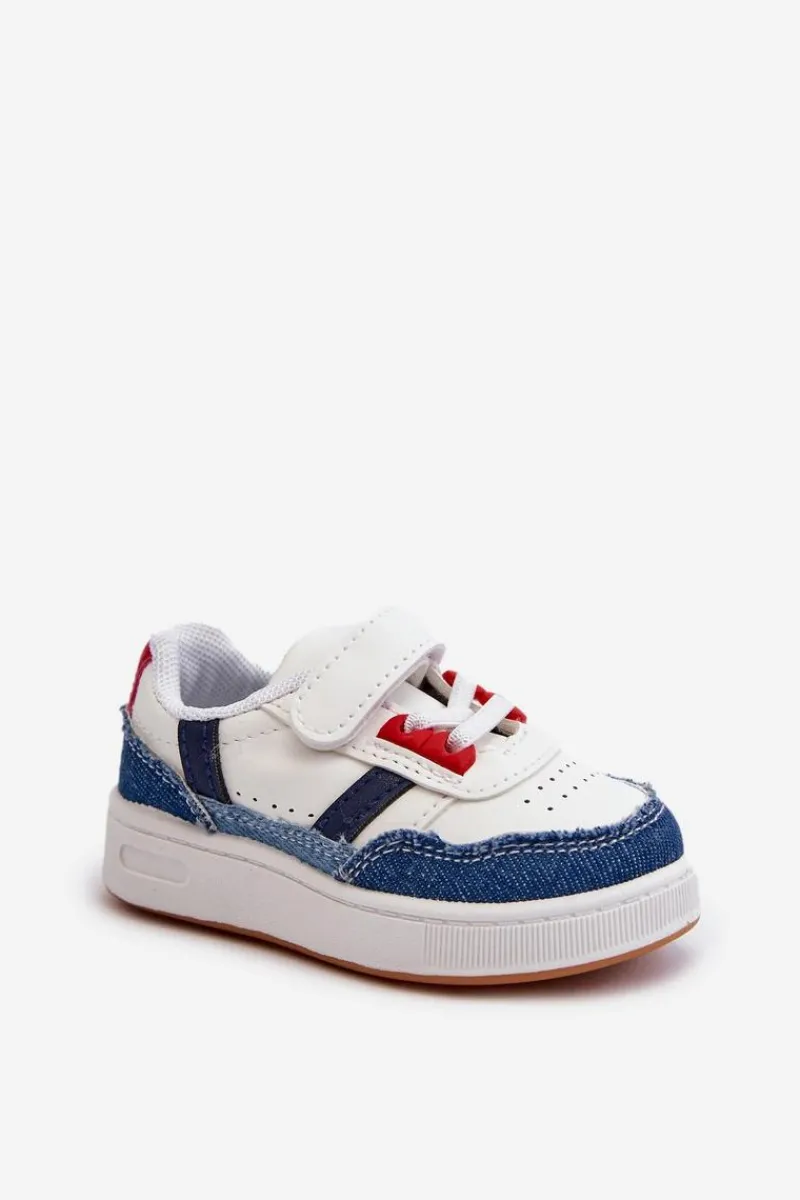 Dziecięce buty sportowe wykonane z eko skóry posiadają na przodzie delikatną perforację. Osadzone na platformie z tworzywa sztucznego. Wkładka została wykonana z materiału. Ten model z pewnością przypadnie do gustu Twojemu dziecku! Sneakersy posiadają zapinanie na rzep. Przy wyborze rozmiaru prosimy sugerować się tabelą rozmiarów.