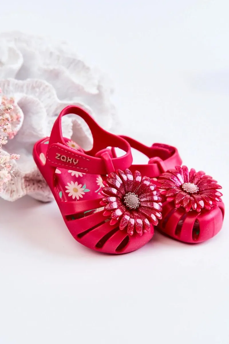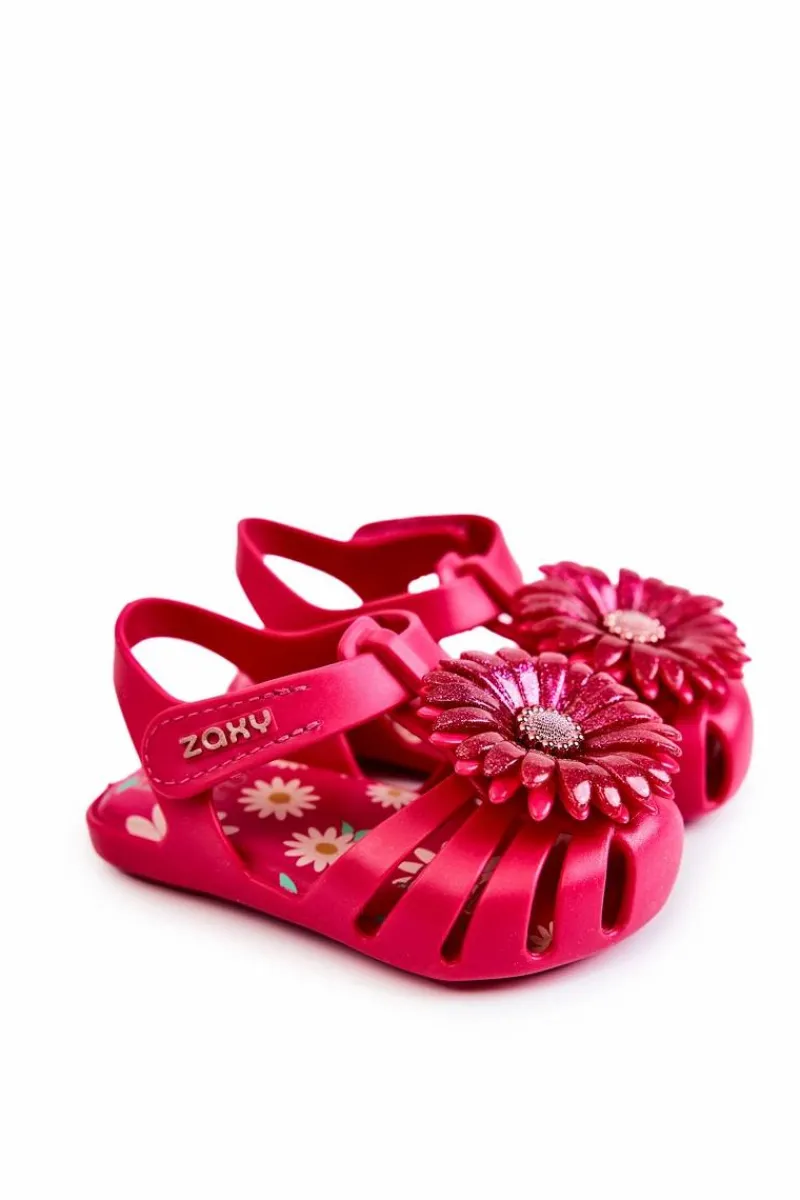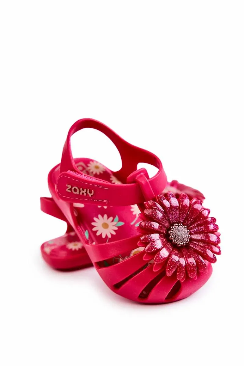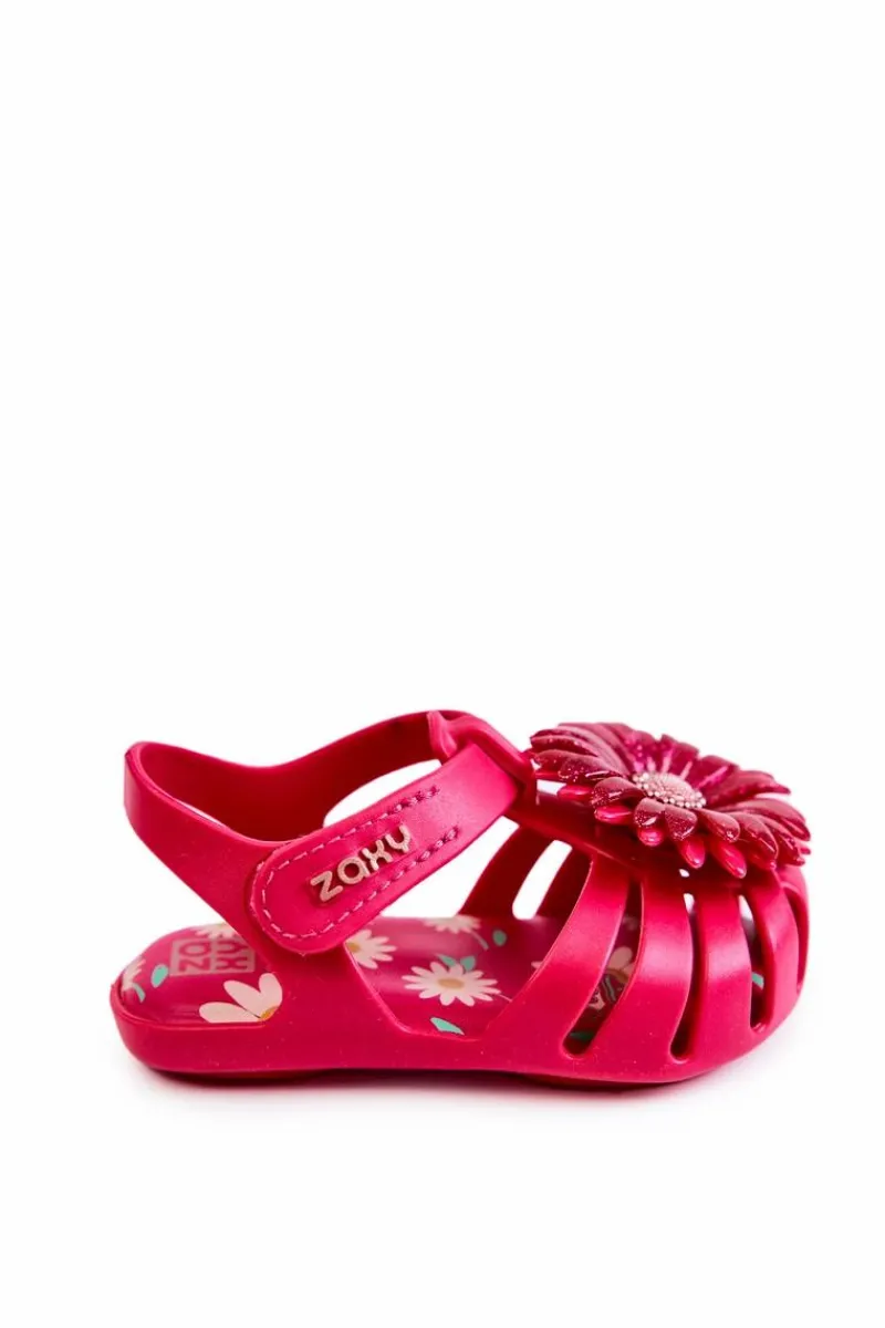 Najnowsza kolekcja dziecięcych sandałek marki ZAXY. Sandałki wykonane z miękkiego oraz pachnącego gumowego tworzywa, co w połączeniu z niesamowicie miękką wkładką zadba o komfort pociech na każdym kroku. Piękne zdobienie na przodzie nadaje im niesamowitego uroku. Wygodne zakładanie dzięki zastosowaniu zapinania na rzep. Buty te są wegańskie i hipoalergiczne. W 100% podlegają recyklingowi i nie zawierają ftalanów, czyli związków chemicznych odpowiedzialnych za elastyczność materiałów typu guma, plastik. Przy wyborze rozmiaru prosimy sugerować się tabelą rozmiarów.