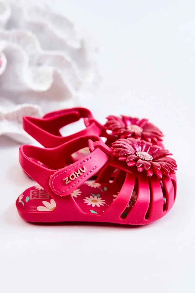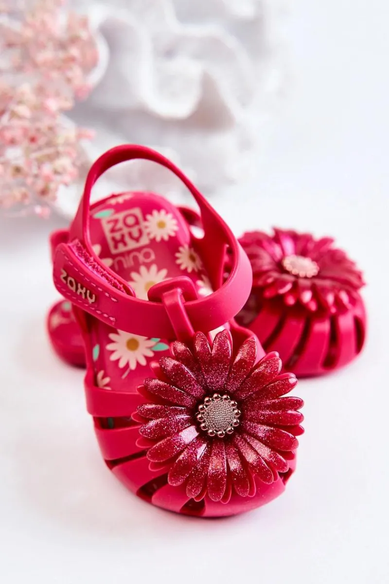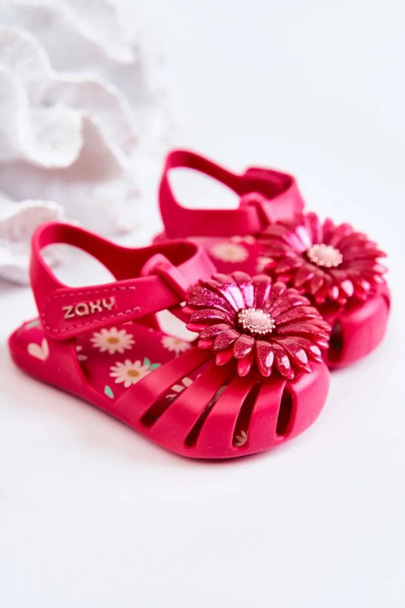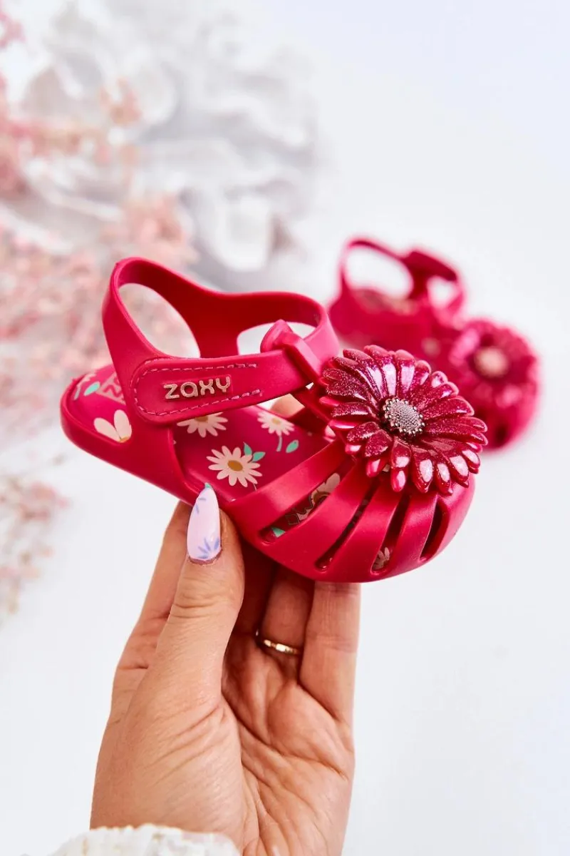 Najnowsza kolekcja dziecięcych sandałek marki ZAXY. Sandałki wykonane z miękkiego oraz pachnącego gumowego tworzywa, co w połączeniu z niesamowicie miękką wkładką zadba o komfort pociech na każdym kroku. Piękne zdobienie na przodzie nadaje im niesamowitego uroku. Wygodne zakładanie dzięki zastosowaniu zapinania na rzep. Buty te są wegańskie i hipoalergiczne. W 100% podlegają recyklingowi i nie zawierają ftalanów, czyli związków chemicznych odpowiedzialnych za elastyczność materiałów typu guma, plastik. Przy wyborze rozmiaru prosimy sugerować się tabelą rozmiarów.