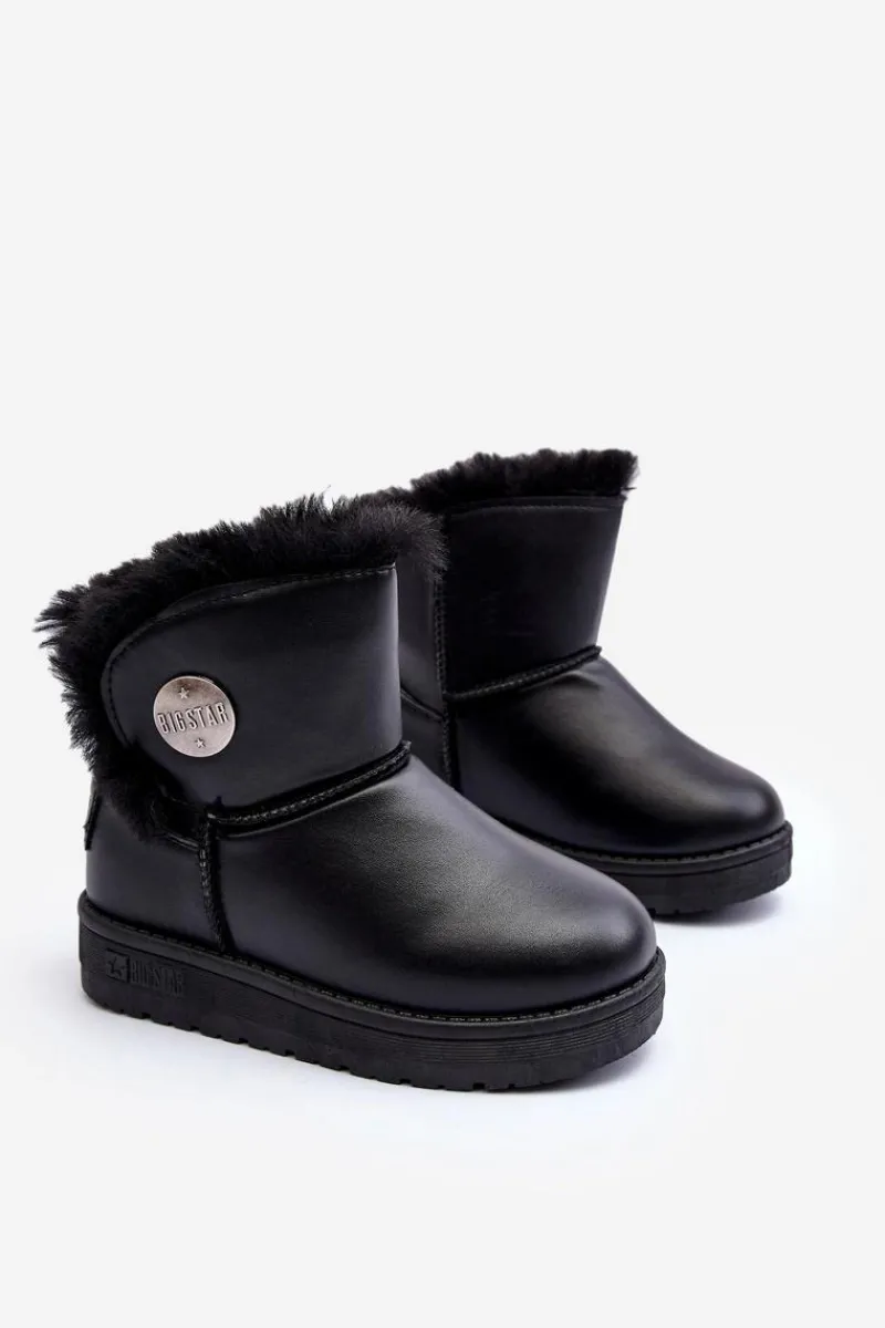 Dziecięce śniegowce od marki Big Star wykonane z eko skóry. Osadzone na podeszwie z gumowego tworzywa. Model wsuwany. Na cholewce logo marki oraz przeszycia. Ocieplone futerkiem w środku. Zapiętek jest usztywniony. Ten model powinien znaleźć się w szafie Twojej pociechy! Przy wyborze rozmiaru prosimy kierować tabelą rozmiarów.