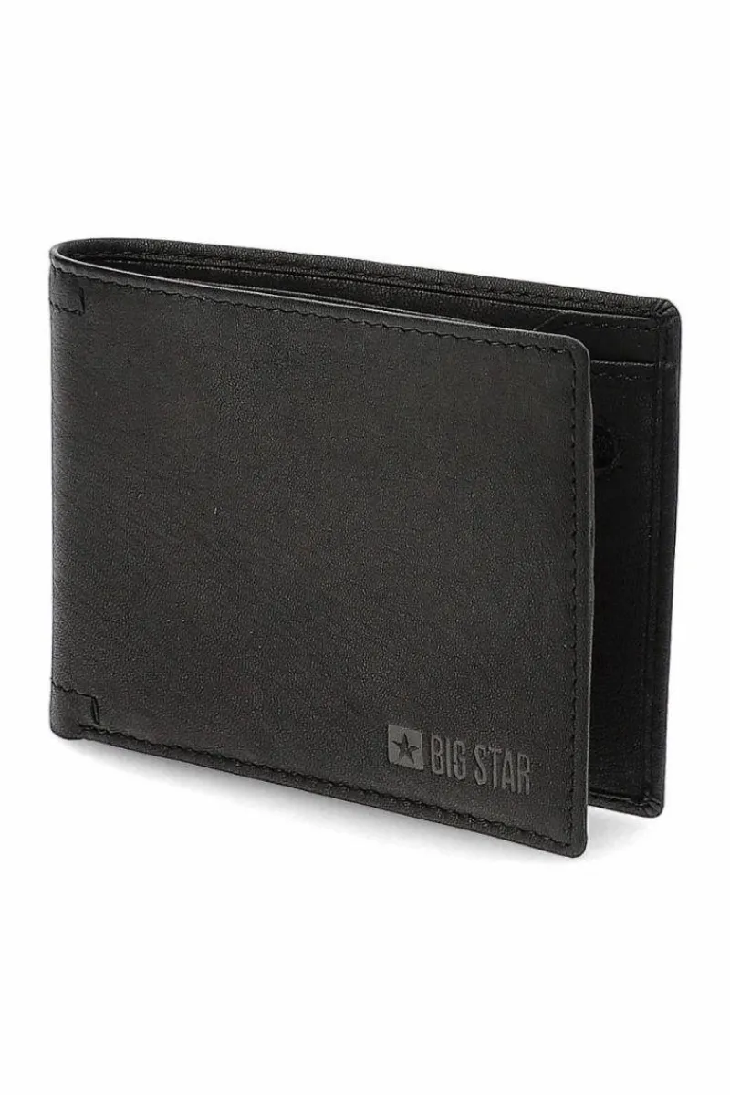Portfel męski od marki BIG STAR. Wykonany ze skóry naturalnej. Posiada 4 miejsca na karty, dzieloną kieszeń na banknoty, oraz zasuwaną kieszonkę na bilon.