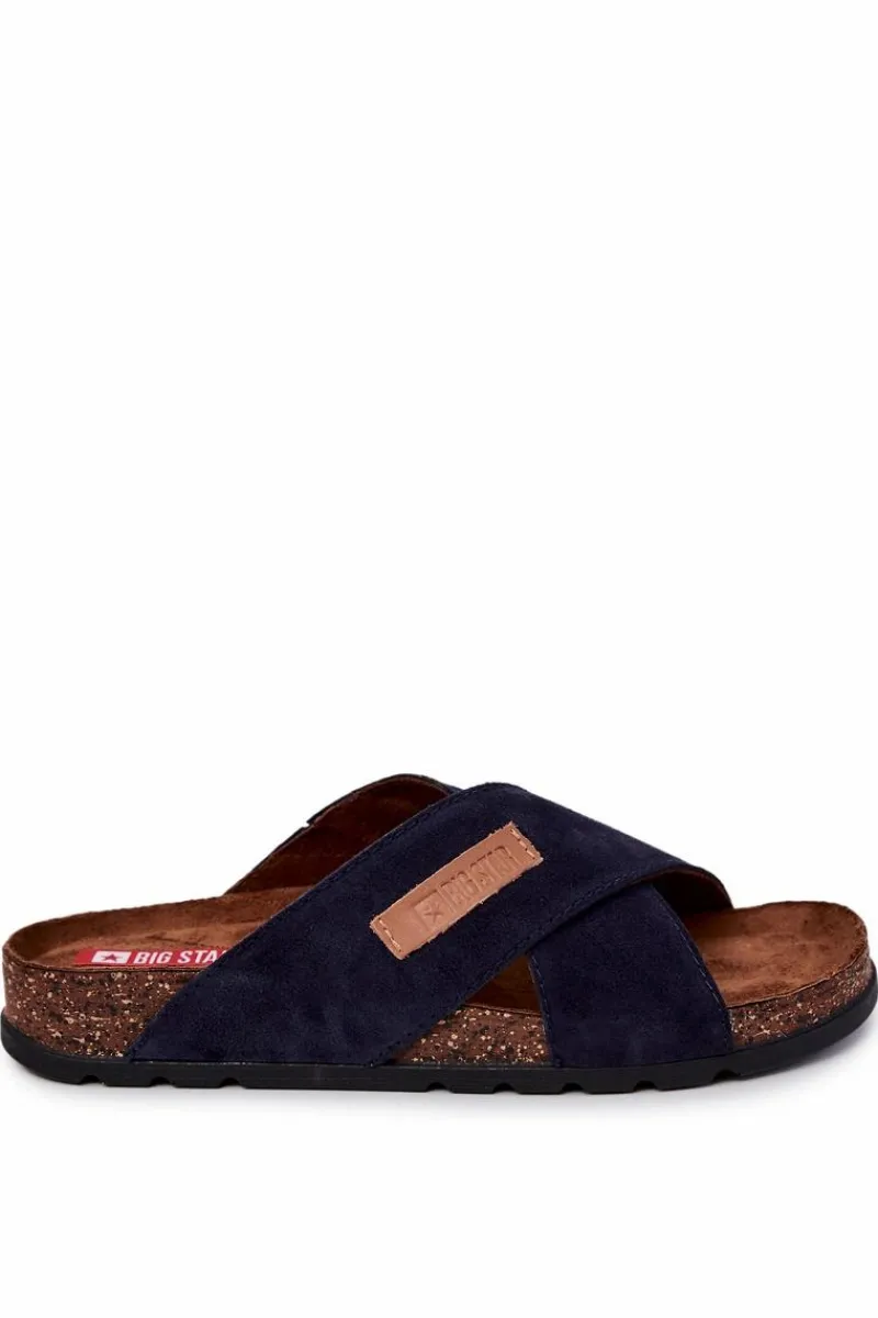 Clearance Big Star Shoes Męskie Wygodne Klapki Big Star JJ176008 Granatowe