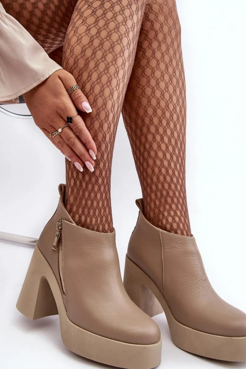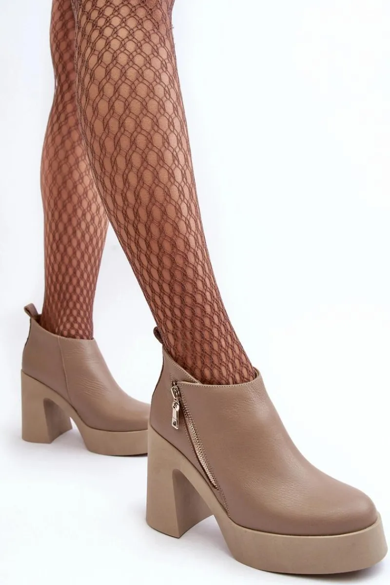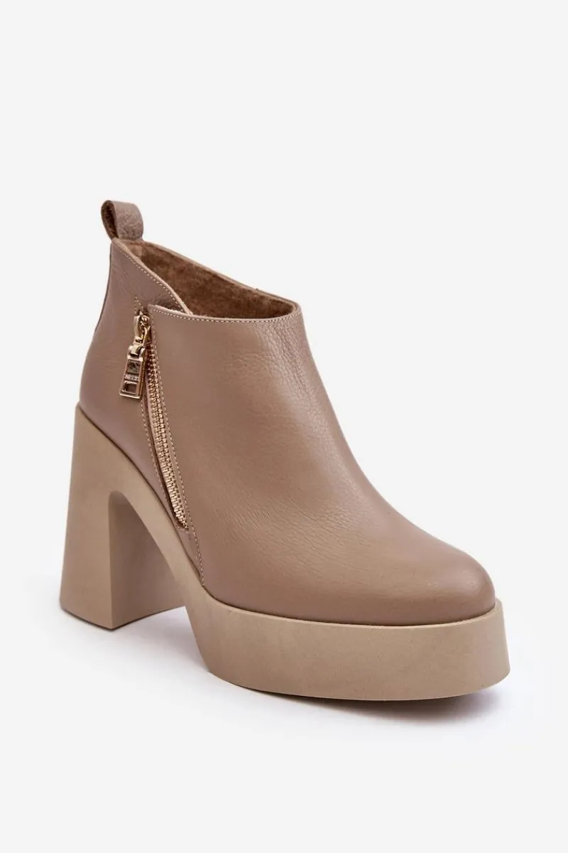 Clearance Botki Damskie Na Masywnym Słupku Z Suwakiem 1755 Beżowe Damskie Botki Ocieplane|Botki Skórzane