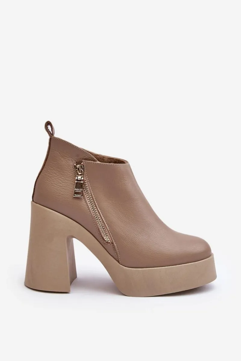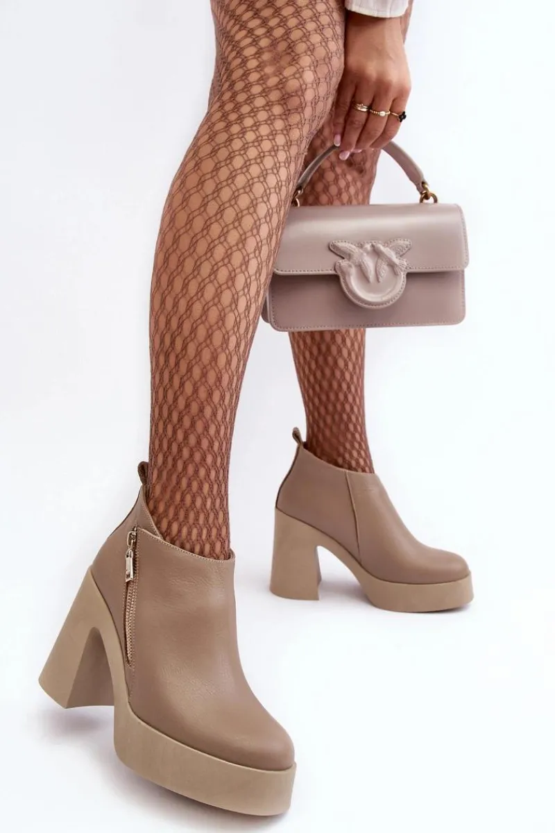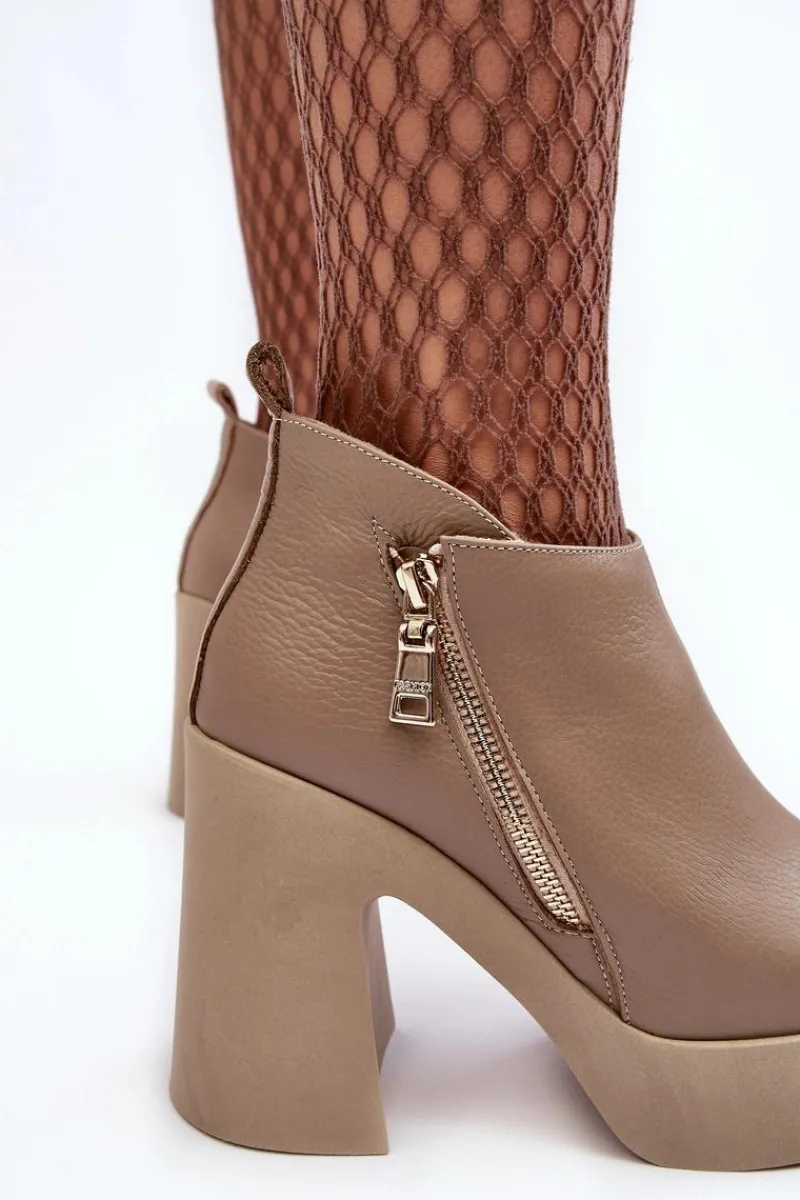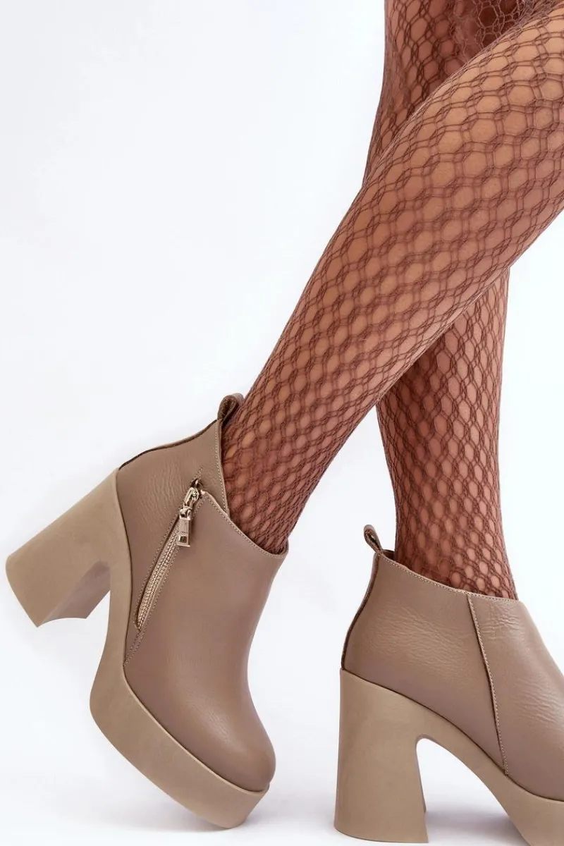 Clearance Botki Damskie Na Masywnym Słupku Z Suwakiem 1755 Beżowe Damskie Botki Ocieplane|Botki Skórzane