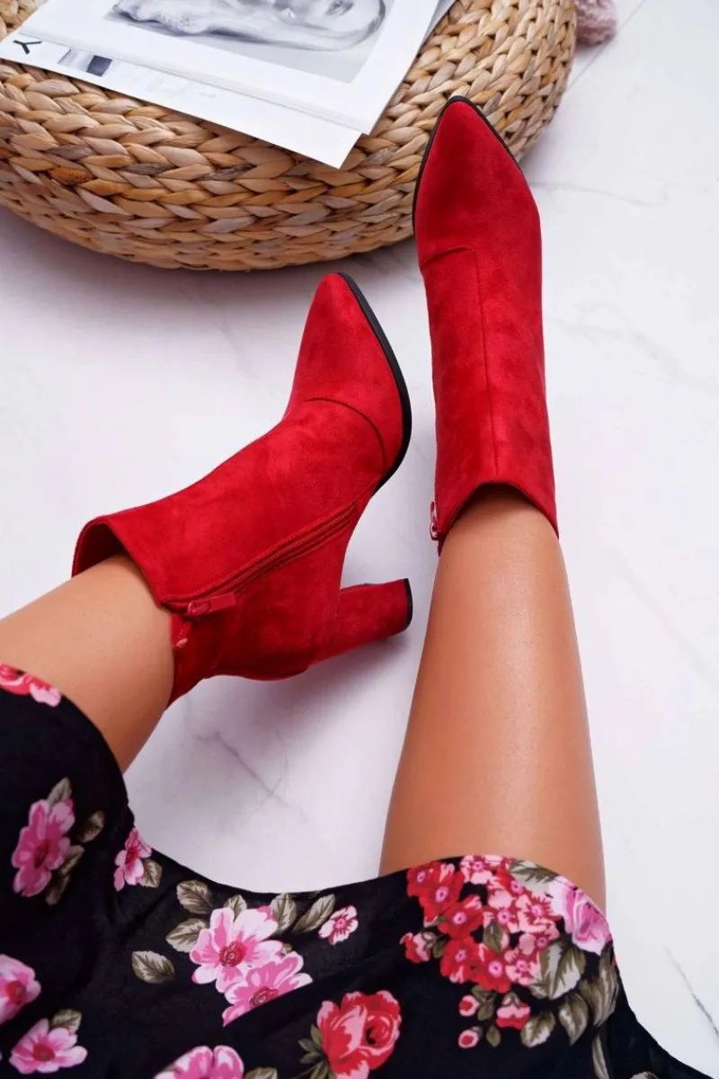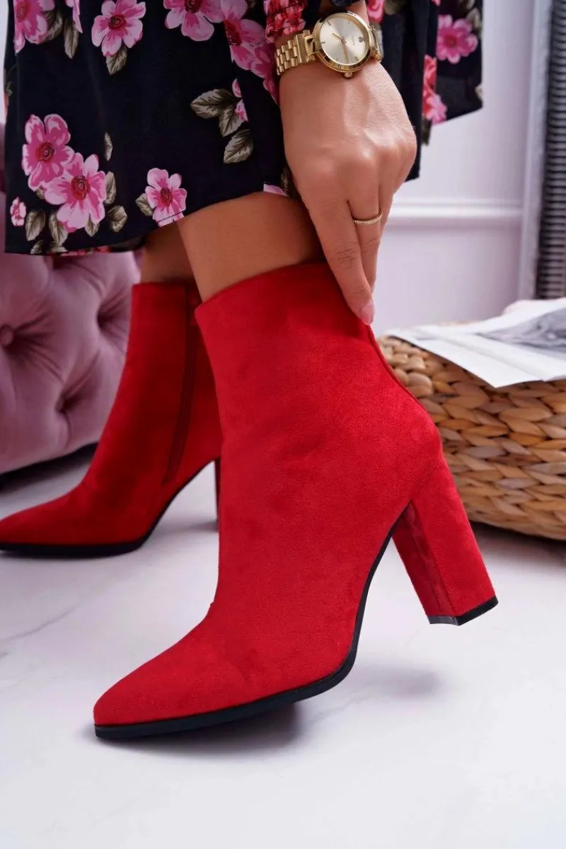 Clearance Botki Damskie Na Słupku Suwak W Szpic Czerwone Ferol Damskie Botki Na Słupku|Botki Zimowe Damskie