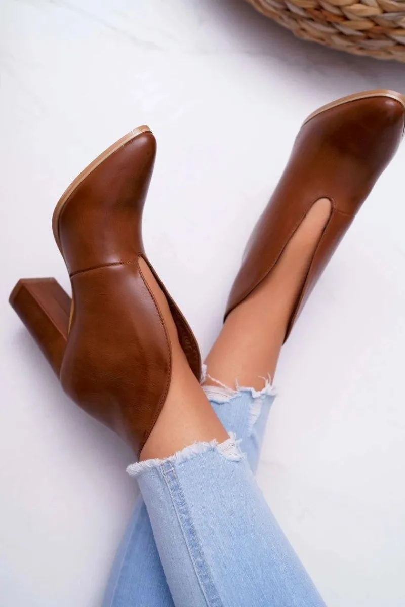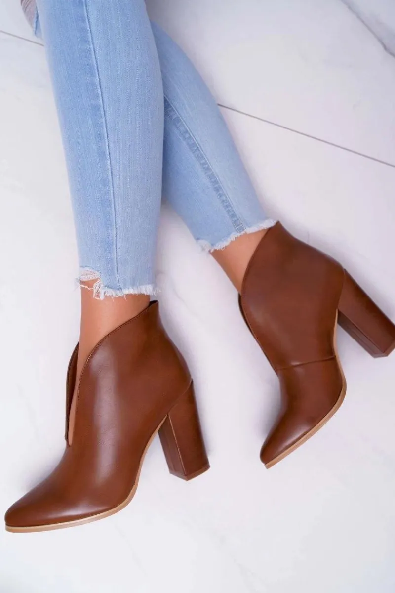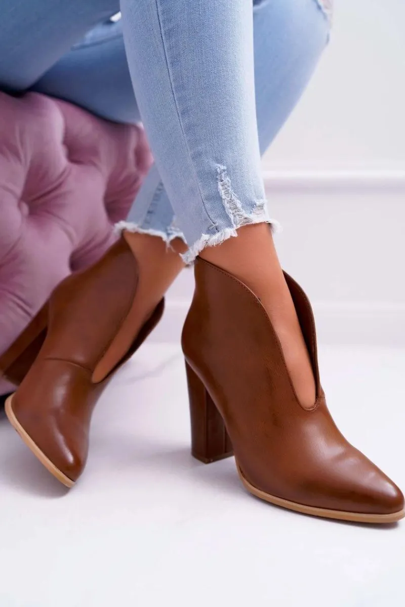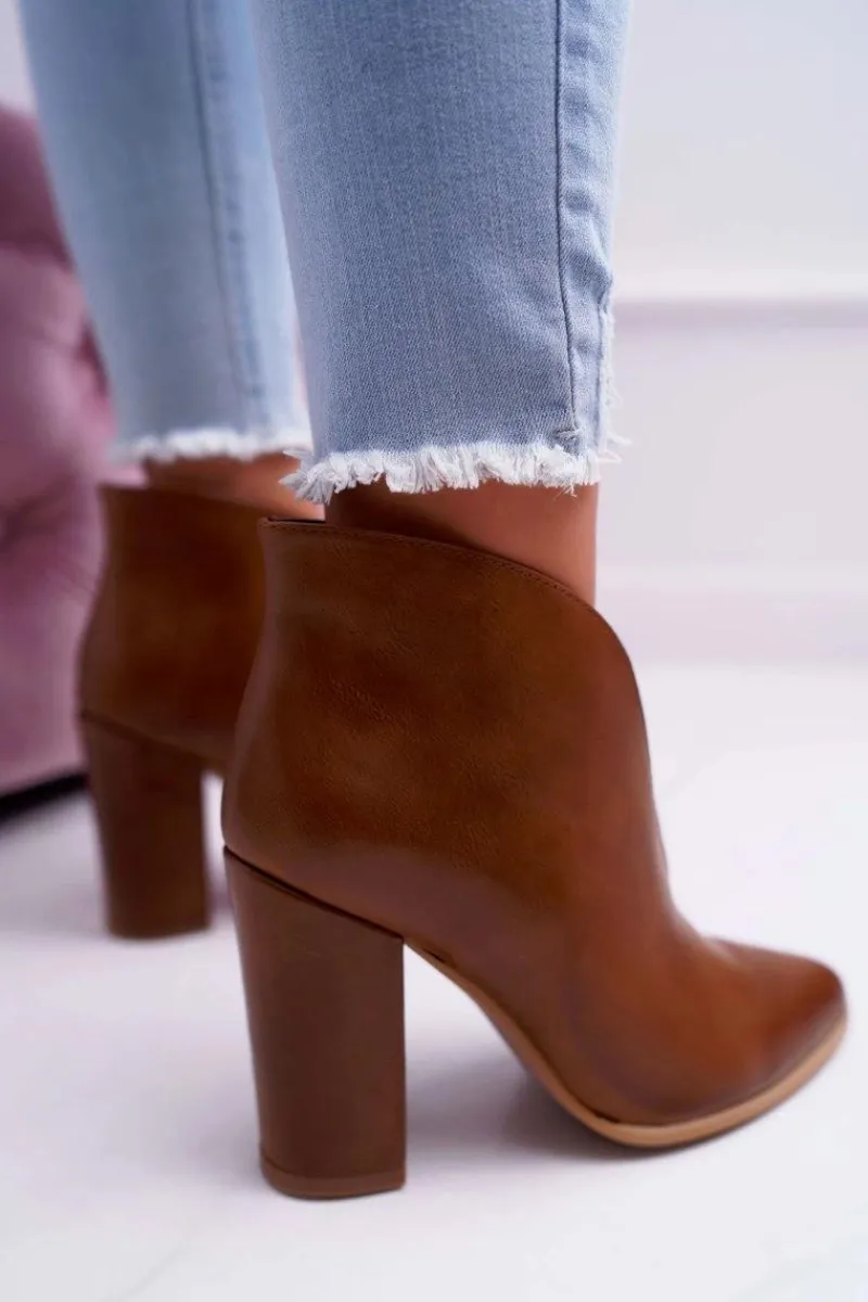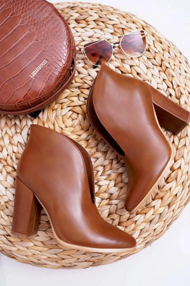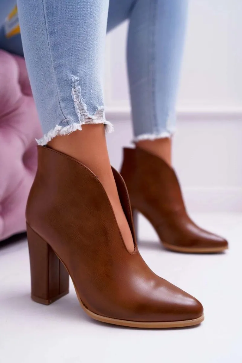 Clearance Botki Damskie Na Słupku Wsuwane z Wycięciami Brązowe Mantana Damskie Botki Na Słupku|Botki Zimowe Damskie