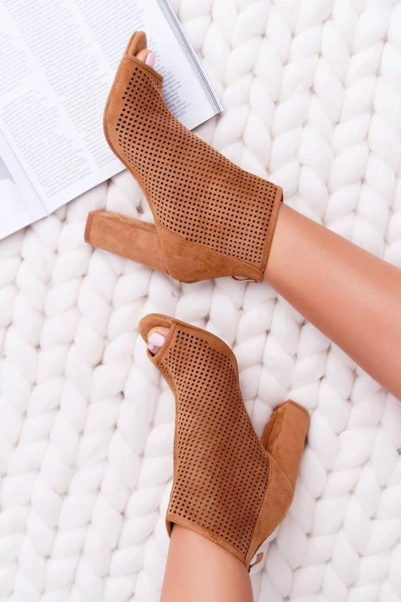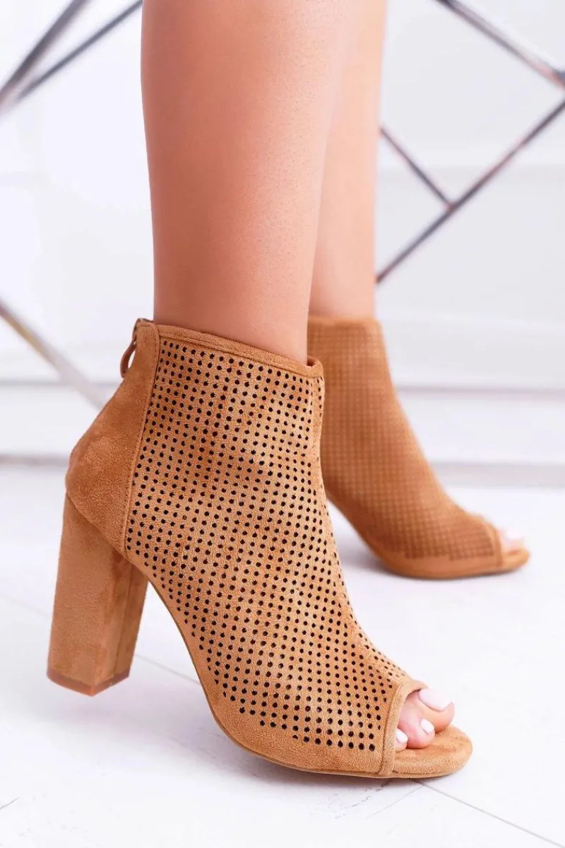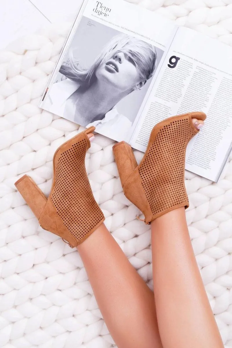 Clearance Botki Damskie Na Słupku Zamszowe Camel Jessin Damskie Botki Na Słupku|Brązowe I Beżowe Botki