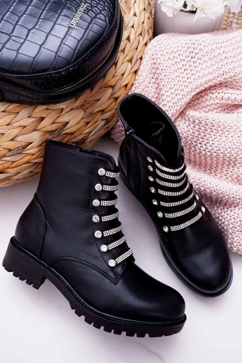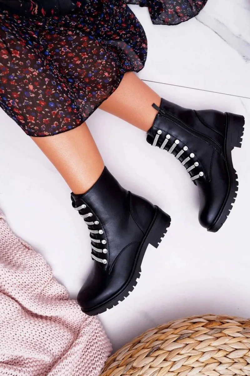 Jeśli tu trafiłaś to znaczy że szukasz modnego i wygodnego obuwia na chłodniejsze dni. Wysoka cholewka zapinana z boku na suwak. Przód cholewki zdobiony cyrkoniami oraz kryształkami które imitują sznurowanie. Środek pokryty jest miłym w dotyku kocem obuwniczym. Lubimy dawać kobietą powód do kupienia nowej pary butów, a te botki to właśnie jeden z nich! Przy wyborze rozmiaru prosimy sugerować się tabelą rozmiarów, która dostępna jest po najechaniu bądź kliknięciu w dany rozmiar.