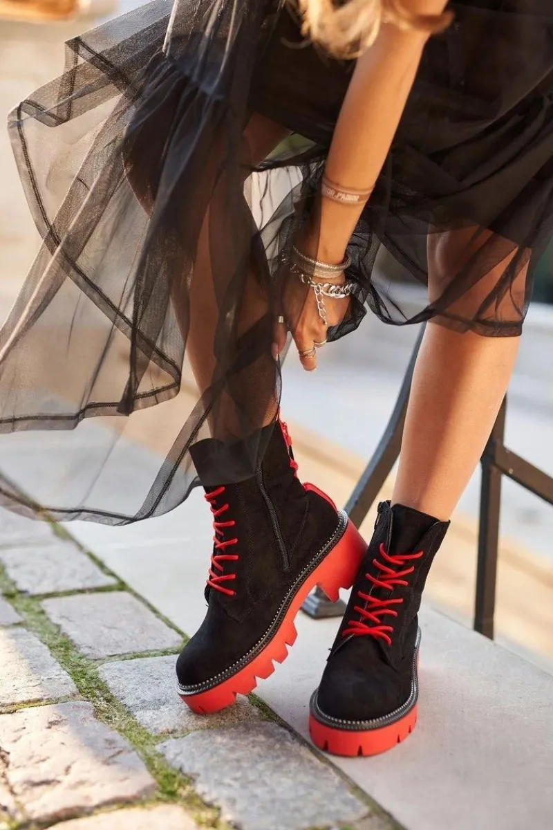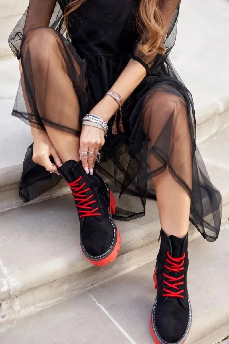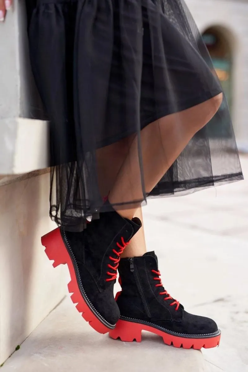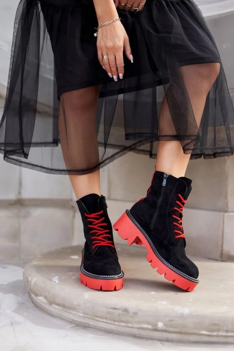 Clearance Botki Damskie Trapery Czarne Czerwone Zamszowe Malawi Damskie Damskie Trapery|Botki Sznurowane