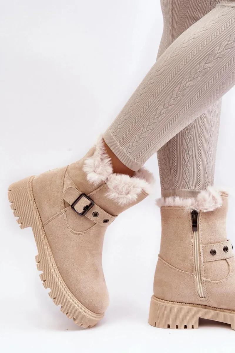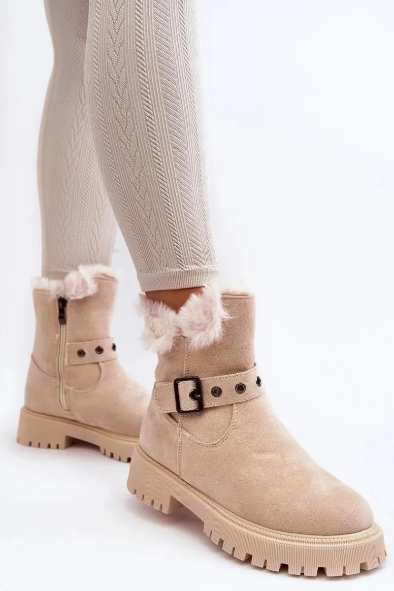 Clearance Botki Damskie Z Futerkiem Na Suwak Beżowe Morcos Damskie Damskie Trapery|Botki Zimowe Damskie