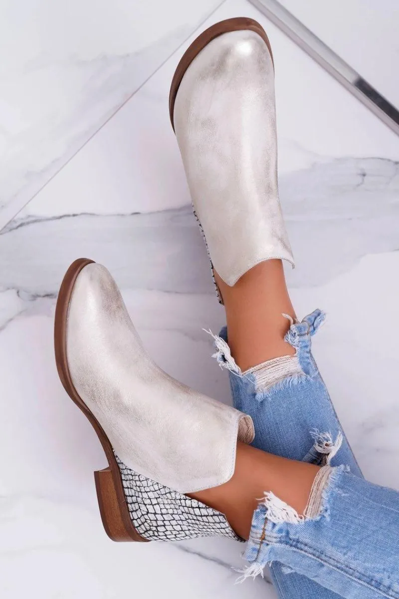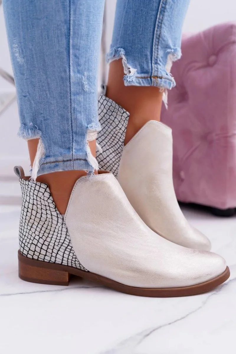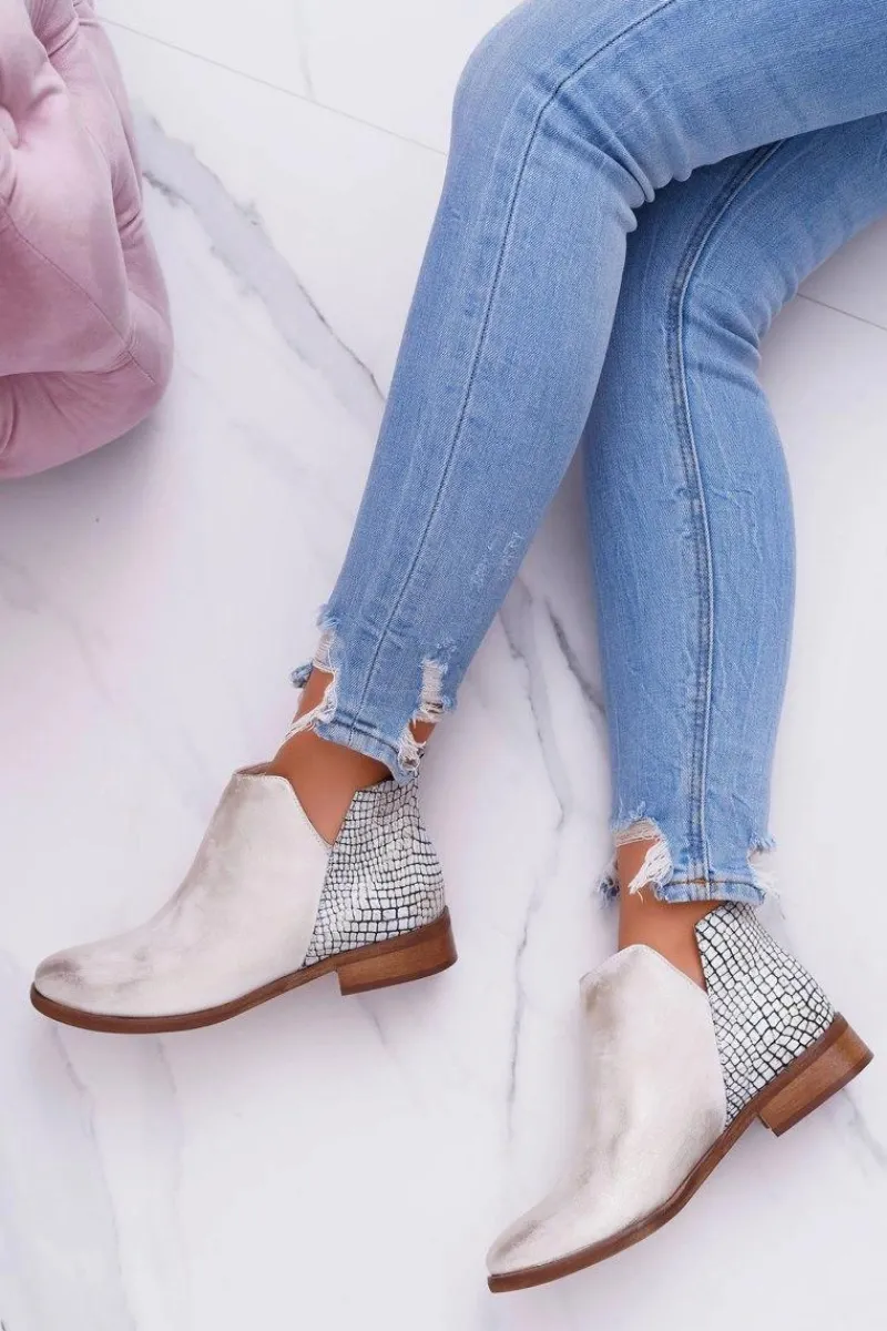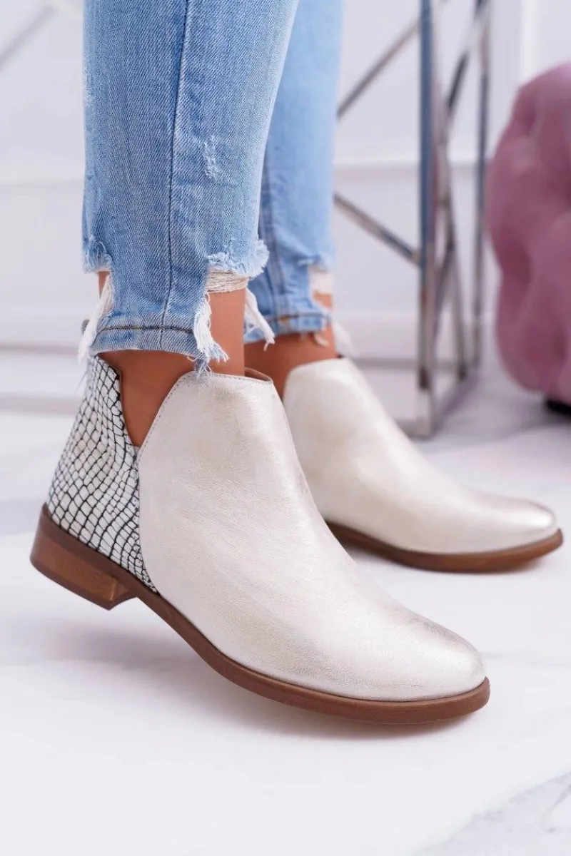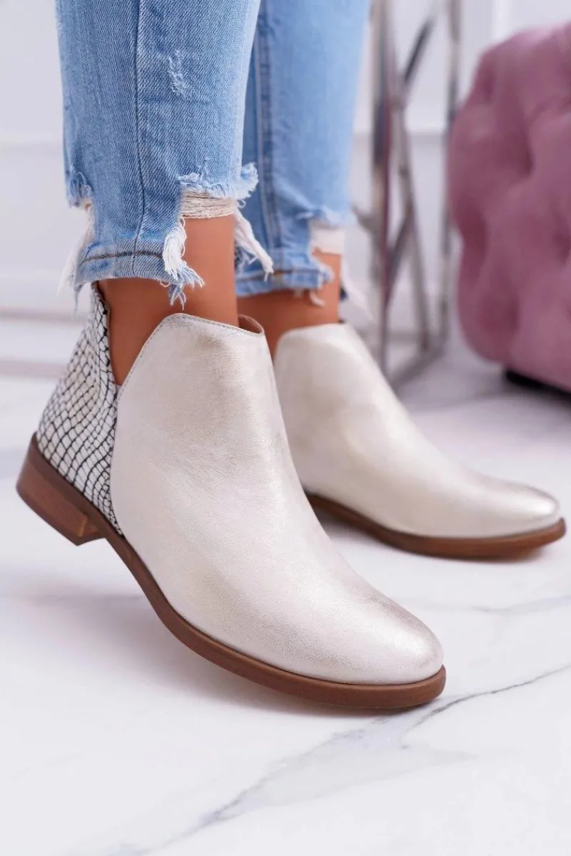 Clearance Boto Botki Damskie Płaski Obcas Wiosenne Skórzane Przecierane Złoto Madness