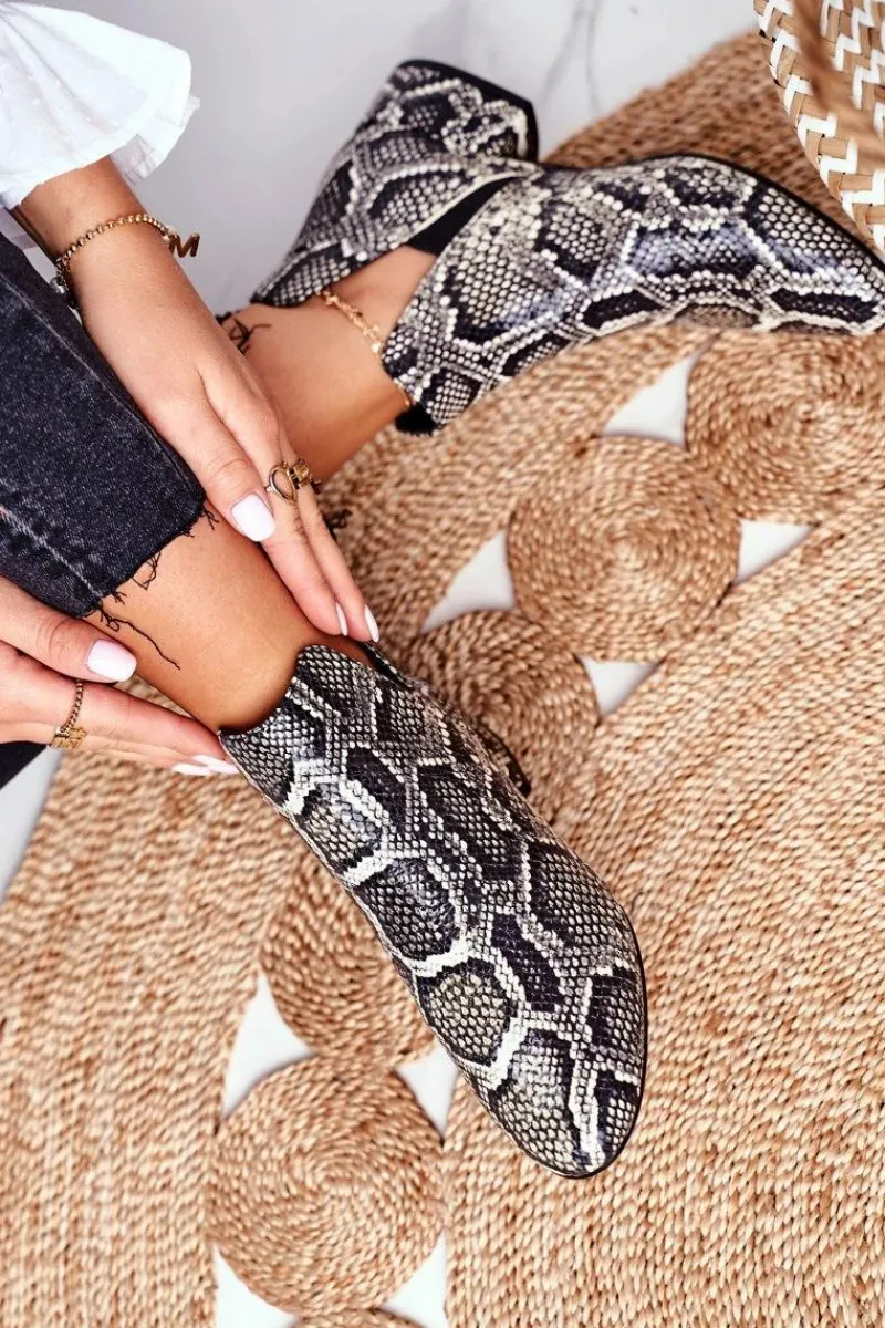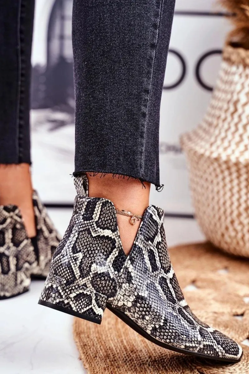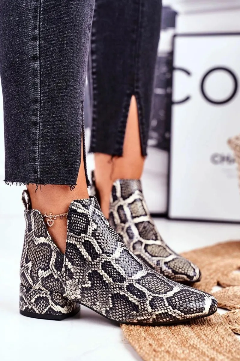 Clearance Boto Botki Damskie Z Wycięciami Skórzane Wężowe Visconi 2625804