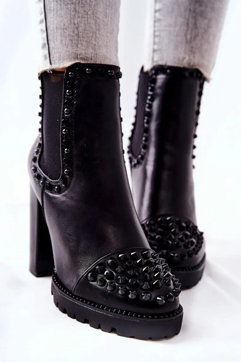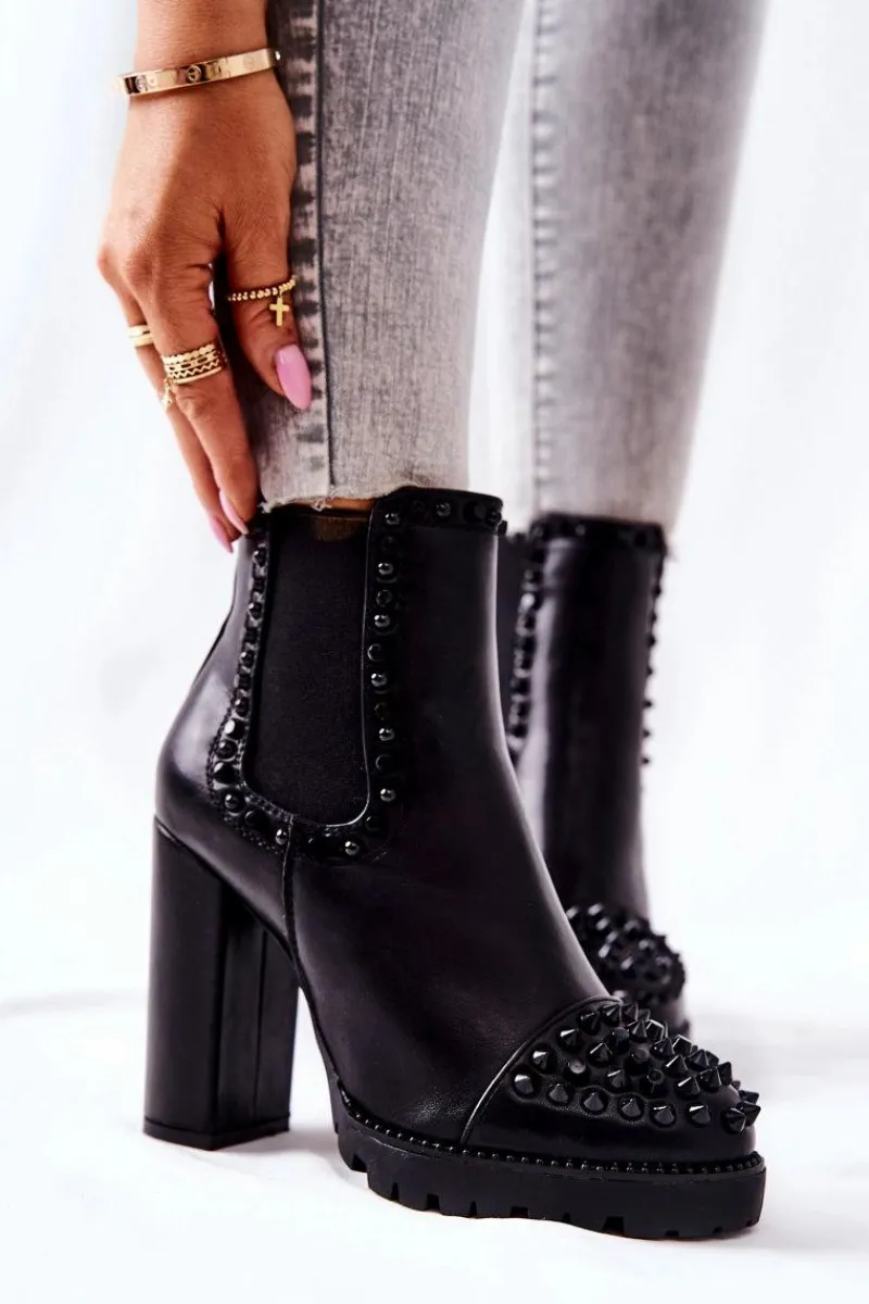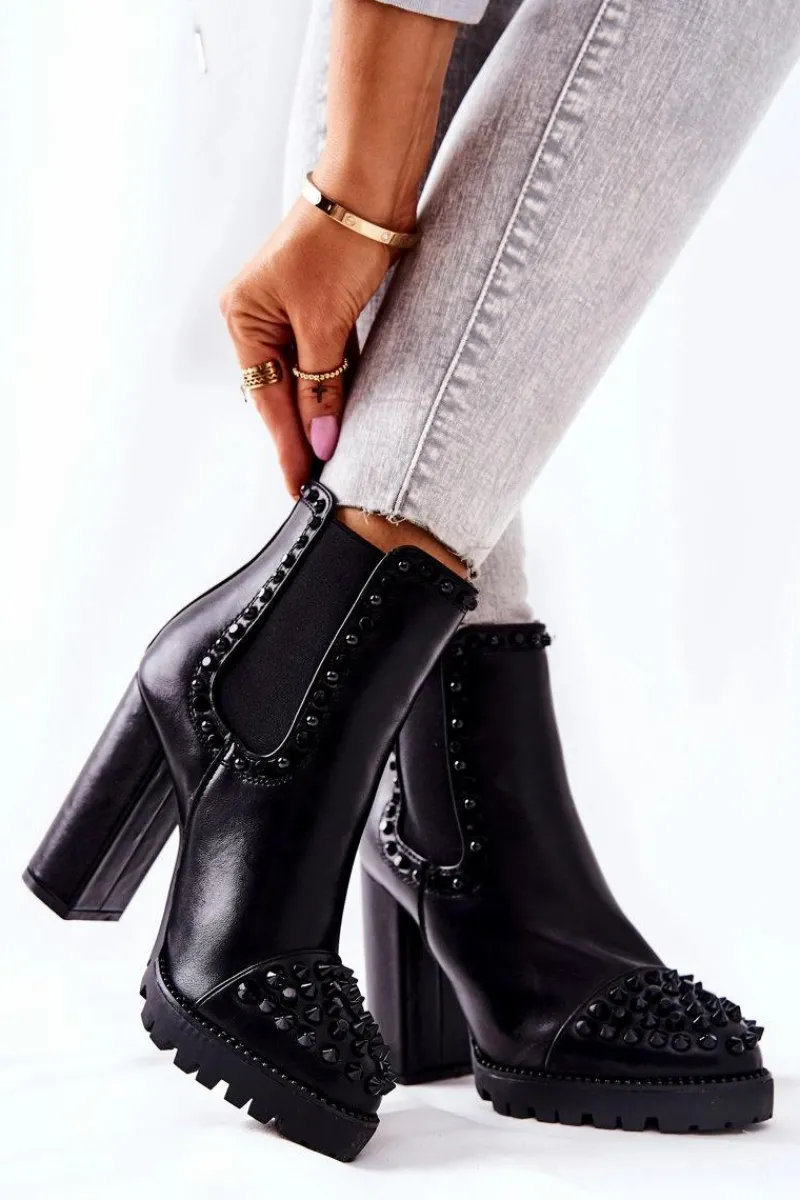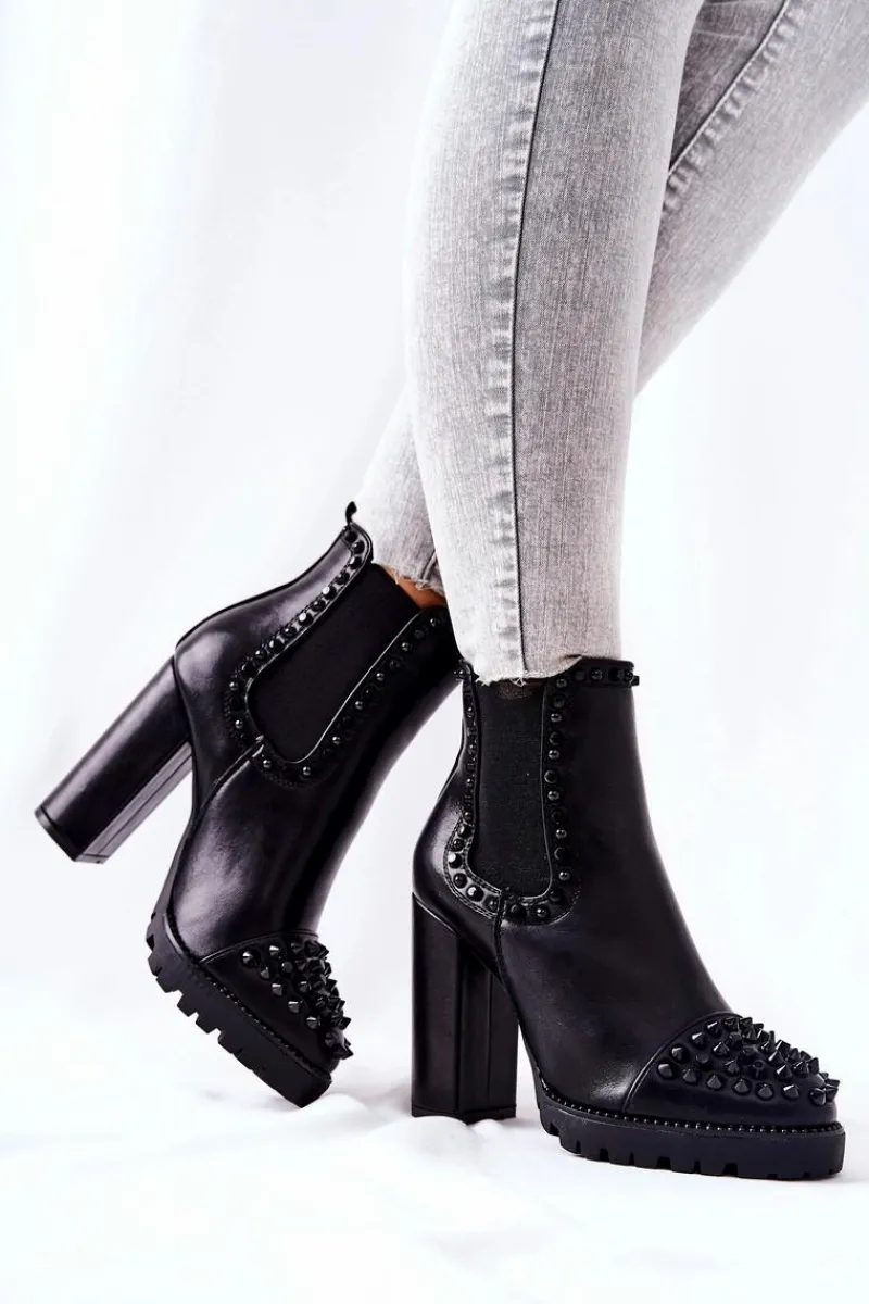 Botki na wyjątkowe okazje! Ozdobione pięknymi dżetami na nosku oraz na cholewce. Zostały wykonane z ekologicznej skóry. Obcas w postaci wysokiego słupka oraz platforma. Nie czekaj aż znikną i zrób wrażenie nie tylko na sobie! Przy wyborze rozmiaru prosimy sugerować się tabelą rozmiarów.