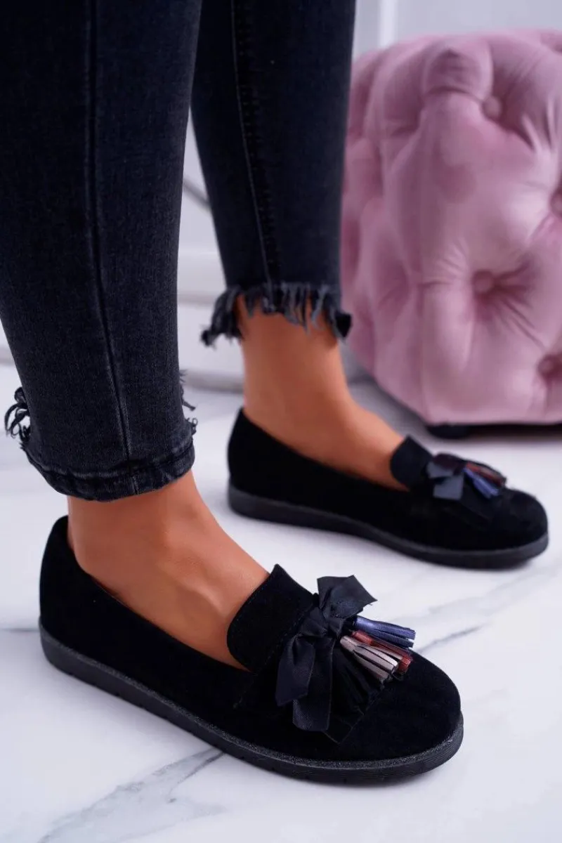 Clearance Boto Czarne Zamszowe Mokasyny Z Frędzlami Ermire