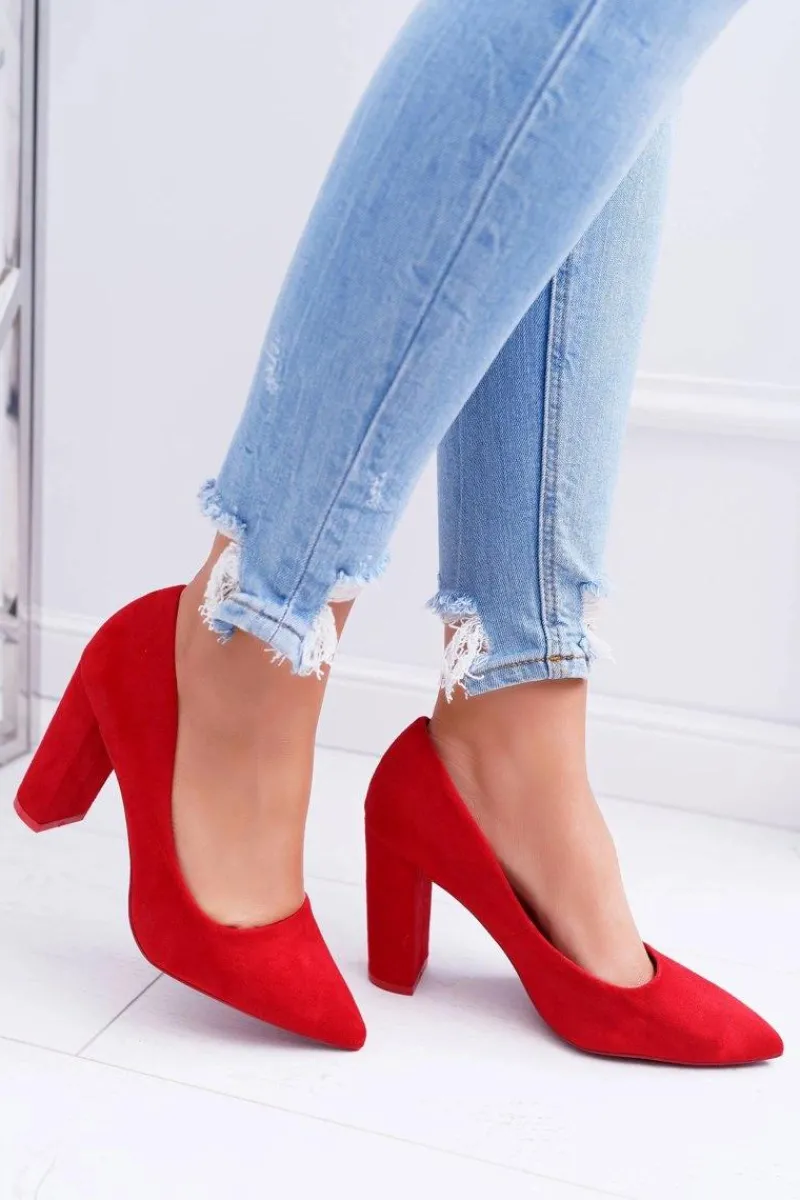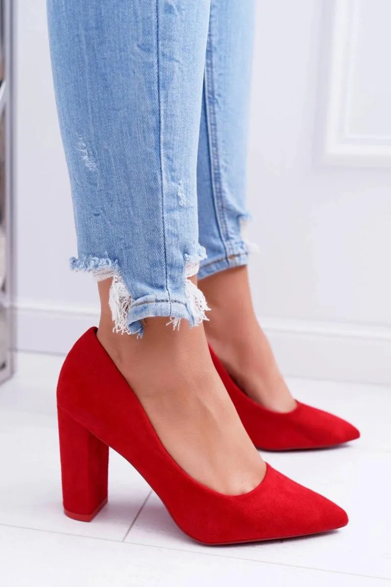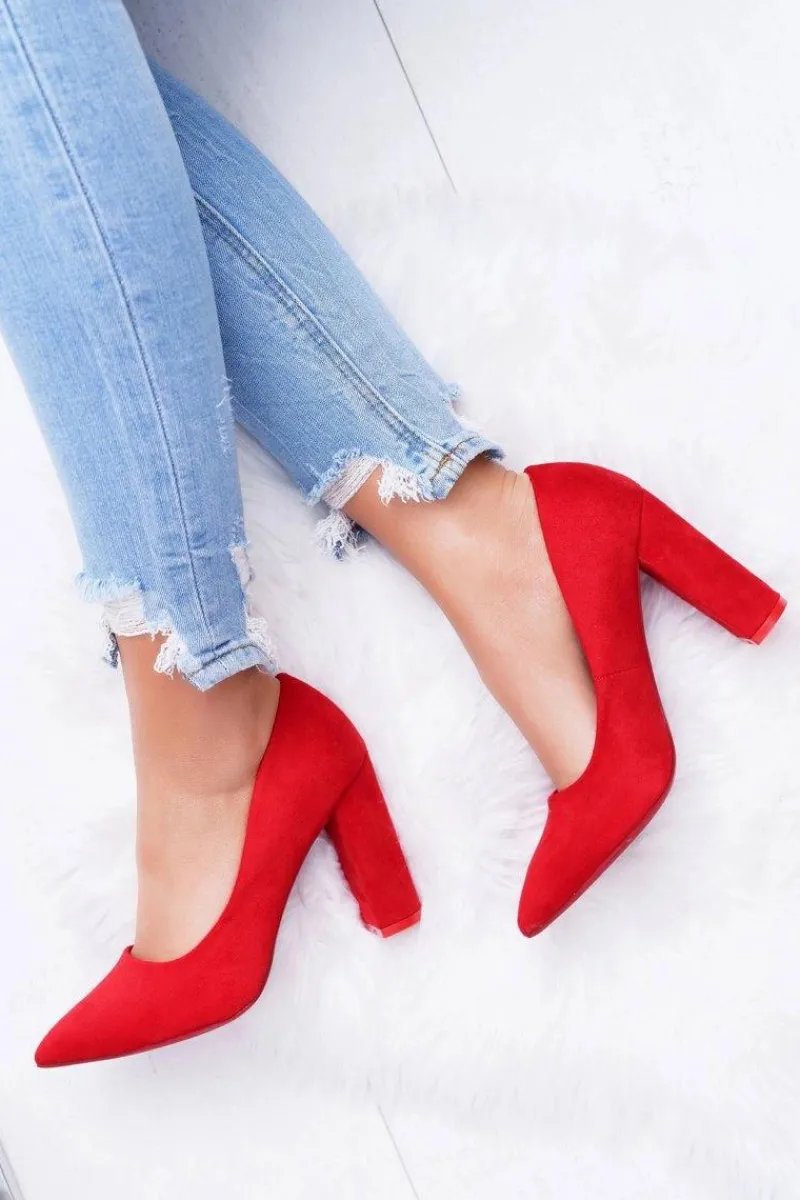 Clearance Boto Czółenka Damskie Na Słupku Zamszowe Czerwone Strawberry