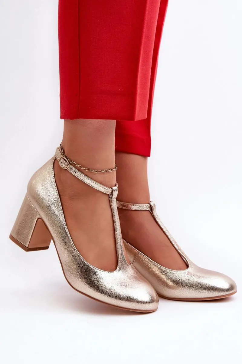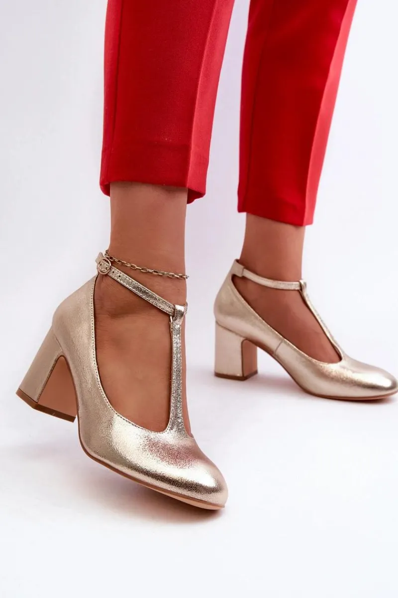 Czółenka damskie wykonane z eko skóry to idealne obuwie dla kobiet ceniących styl i wygodę. Stabilny obcas w postaci słupka. Z przodu delikatny paseczek, który dodaje im subtelności i uroku. Zapinane na regulowany pasek ze sprzączką, gwarantują precyzyjne dopasowanie do stopy. Noski zaokrąglone. Wkładka ze skóry naturalnej. Doskonałe na wiele okazji, od codziennych stylizacji po specjalne wydarzenia. Przy wyborze rozmiaru prosimy sugerować się tabelą rozmiarów.