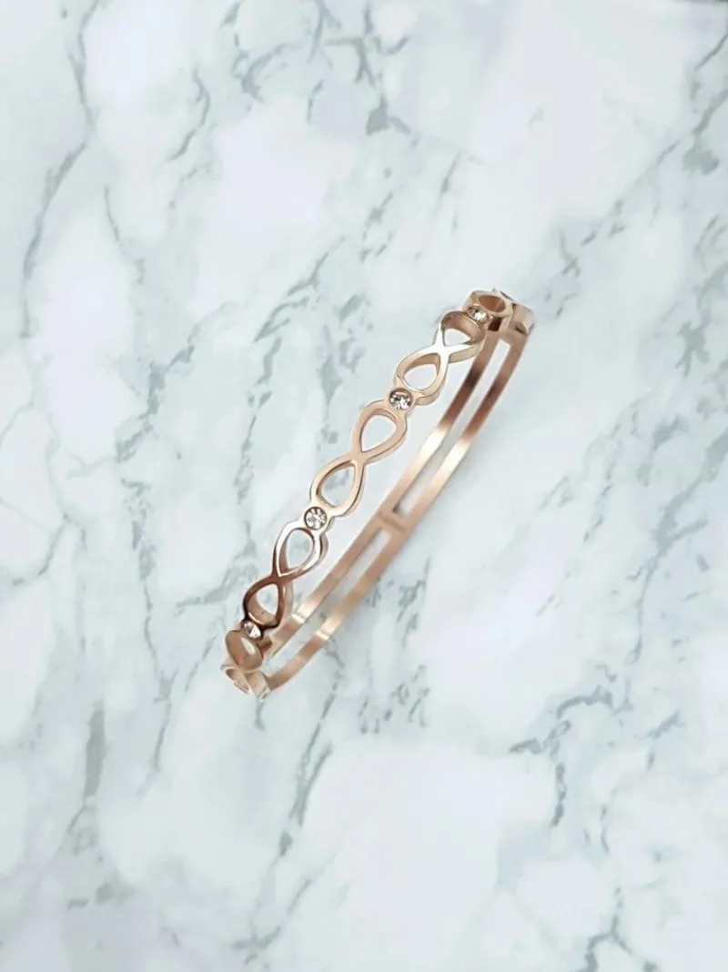 Clearance Boto Damska Bransoleta Stalowa Z Cyrkonią Nieskończoność Różowe Złoto Glam