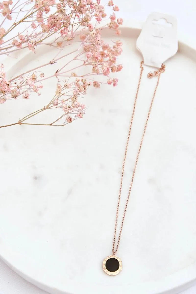 Clearance Boto Damski Naszyjnik Łańcuszek Z Czarnym Kołem Różowe Złoto