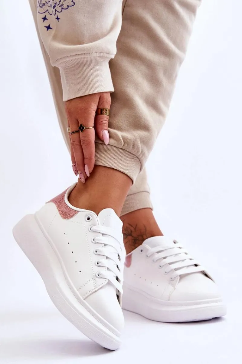 Wygodne sportowe damskie buty zostały wykonane z wysokiej jakości eko skóry z delikatną perforacją na boku cholewki. Wiązane na płaskie sznurowadła. Osadzone na masywnej platformie, która została wykonana z gumowego tworzywa. Wkładka jest wykonana z pianki i materiału. Nosek zaokrąglony. Model, który pasuje do wielu sportowych stylizacji. Koniecznie sprawdź pozostałe modele obuwia sportowego dostępnego w naszej ofercie! Przy wyborze rozmiaru prosimy kierować tabelą rozmiarów.