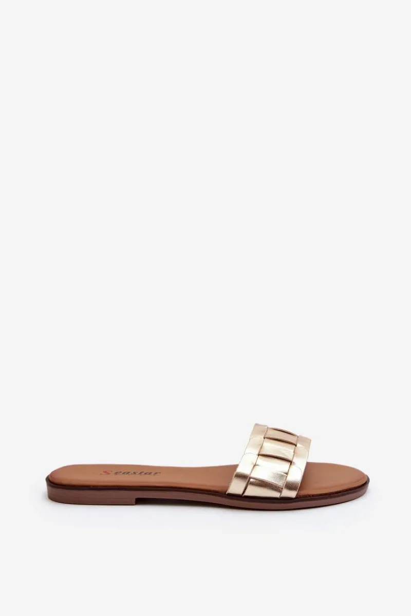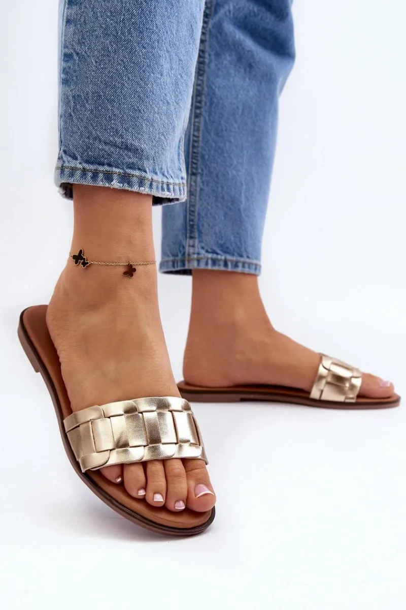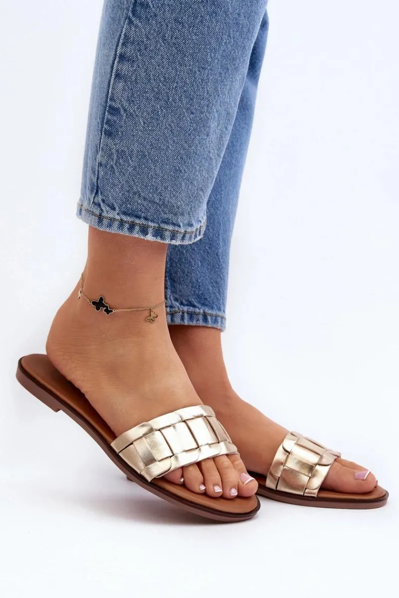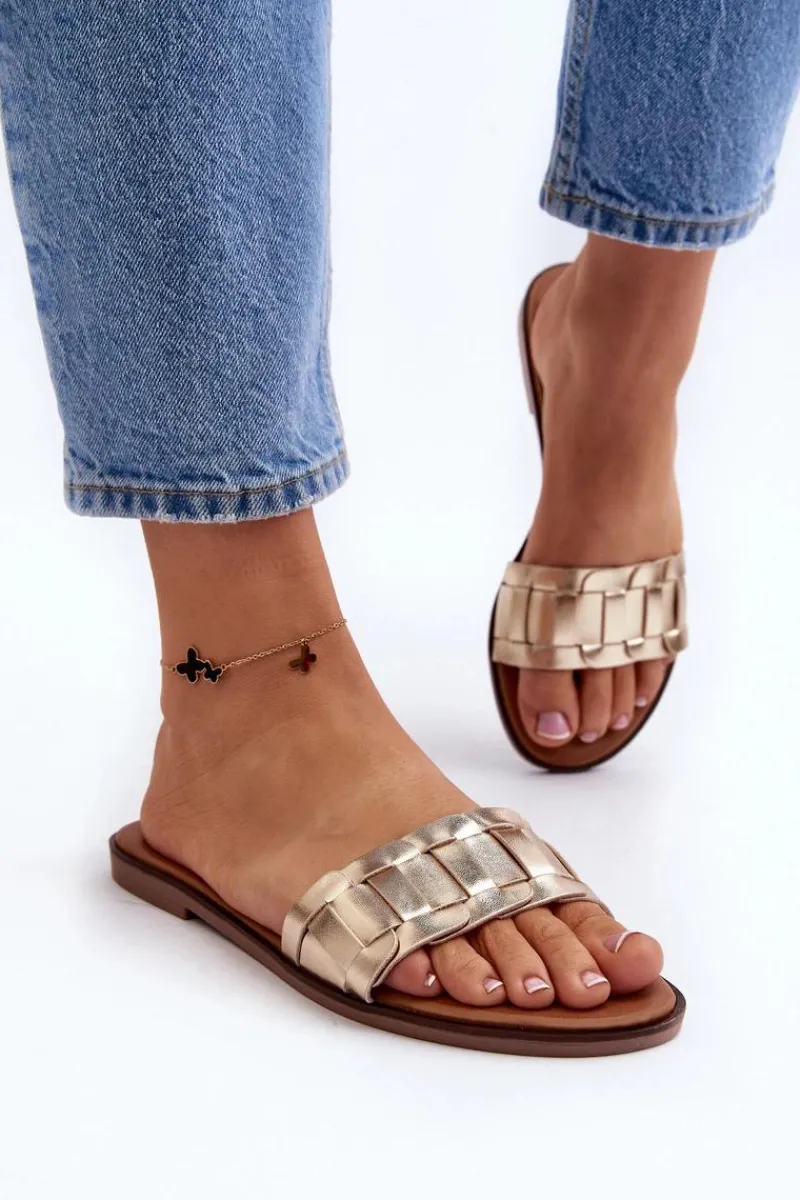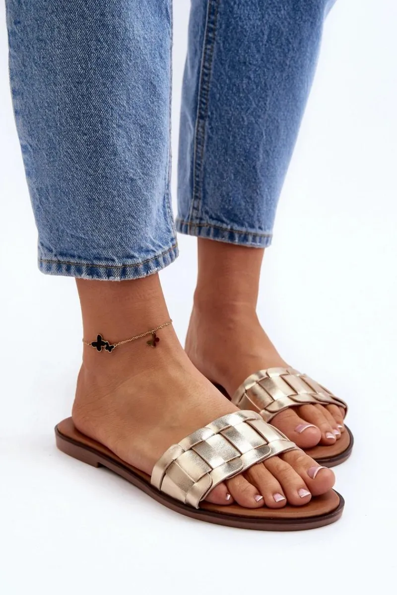 Klapki wykonane z eko skóry. Osadzone na płaskim obcasie. Klasyczny fason idealnie dopełni stylizację z letnimi sukienkami, spodniami i spódnicami. Miękka wkładka z eko skóry zapewni wygodę podczas użytkowania. Koniecznie powinnaś je mieć w swojej letniej garderobie! Przy wyborze rozmiaru prosimy sugerować się tabelą rozmiarów.