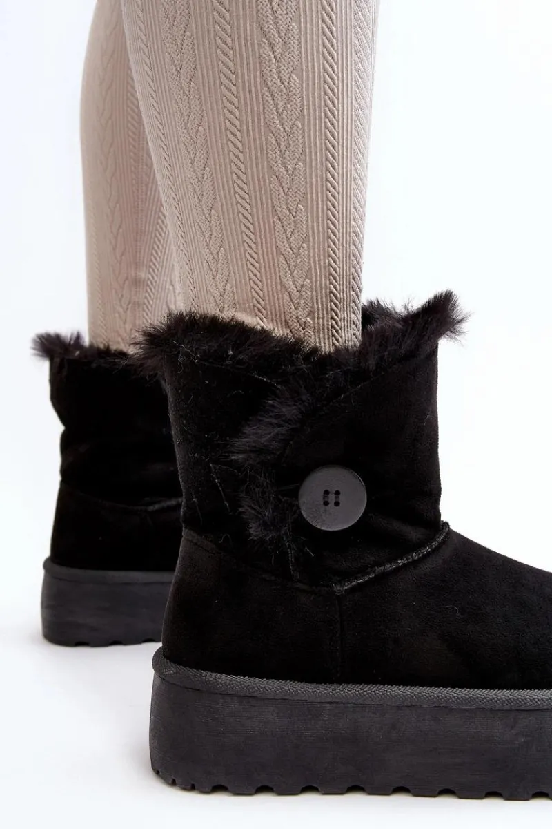 Śniegowce damskie osadzone na grubej platformie z gumowego tworzywa. Cholewka za kostkę, ozdobiona guzikiem i futerkiem. Wykonane z eko zamszu. Środek ocieplony. Ten modny model świetnie sprawdzi się w sezonie jesienno-zimowym. Koniecznie musisz je mieć! Przy wyborze rozmiaru prosimy sugerować się tabelą rozmiarów.