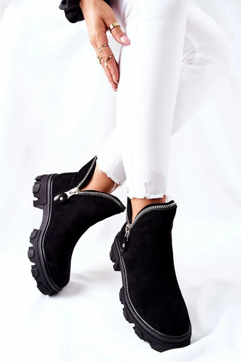 Niesamowite botki, które z pewnością wpadną w oko! To właśnie z tymi botkami stworzysz niesamowite zestawienia stylistyczne. Botki zdobione suwakami wokół cholewki. Gruba podeszwa to ich kolejny atut. Przy wyborze rozmiaru prosimy sugerować się tabelą rozmiarów.