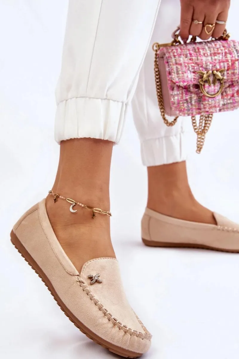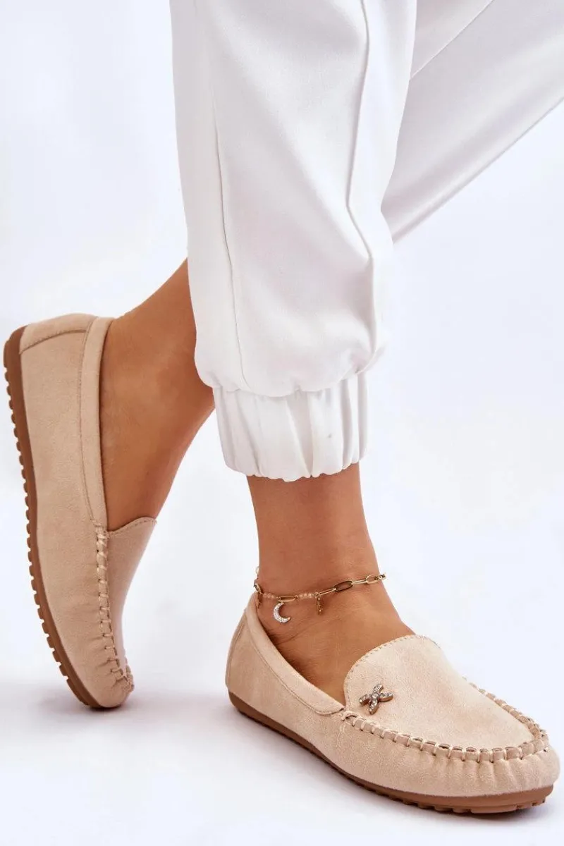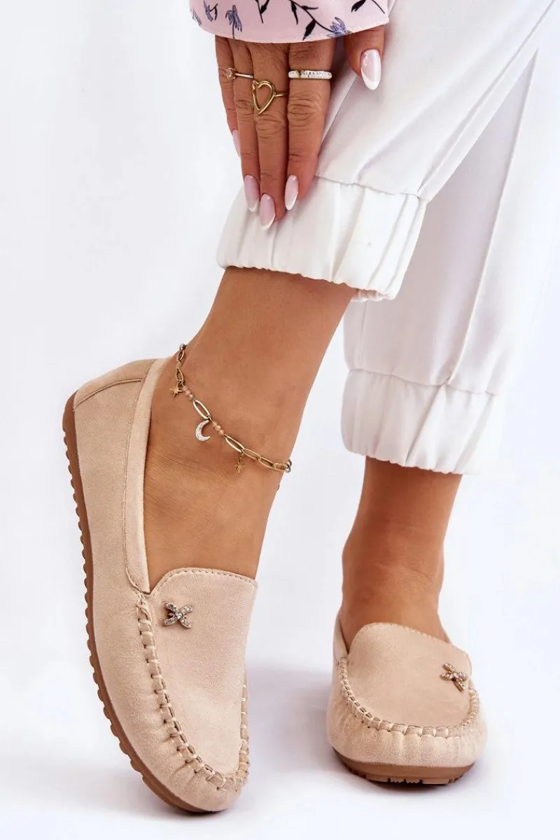 Klasyczne mokasyny damskie wykonane z miękkiego eko zamszu. Buty są niesamowicie wygodne, dzięki miękkiej, wykonanej z naturalnej skóry wkładce. Osadzone na delikatnej platformie. Ponadczasowy model dopełni wiele Twoich stylizacji! Koniecznie powinnaś je mieć! Przy wyborze rozmiaru prosimy sugerować się tabelą rozmiarów.