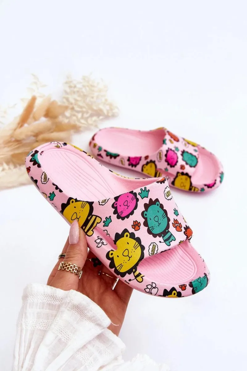 Clearance Boto Dziecięce Lekkie Piankowe Klapki Motyw Lwa Ciemnoróżowe Esther