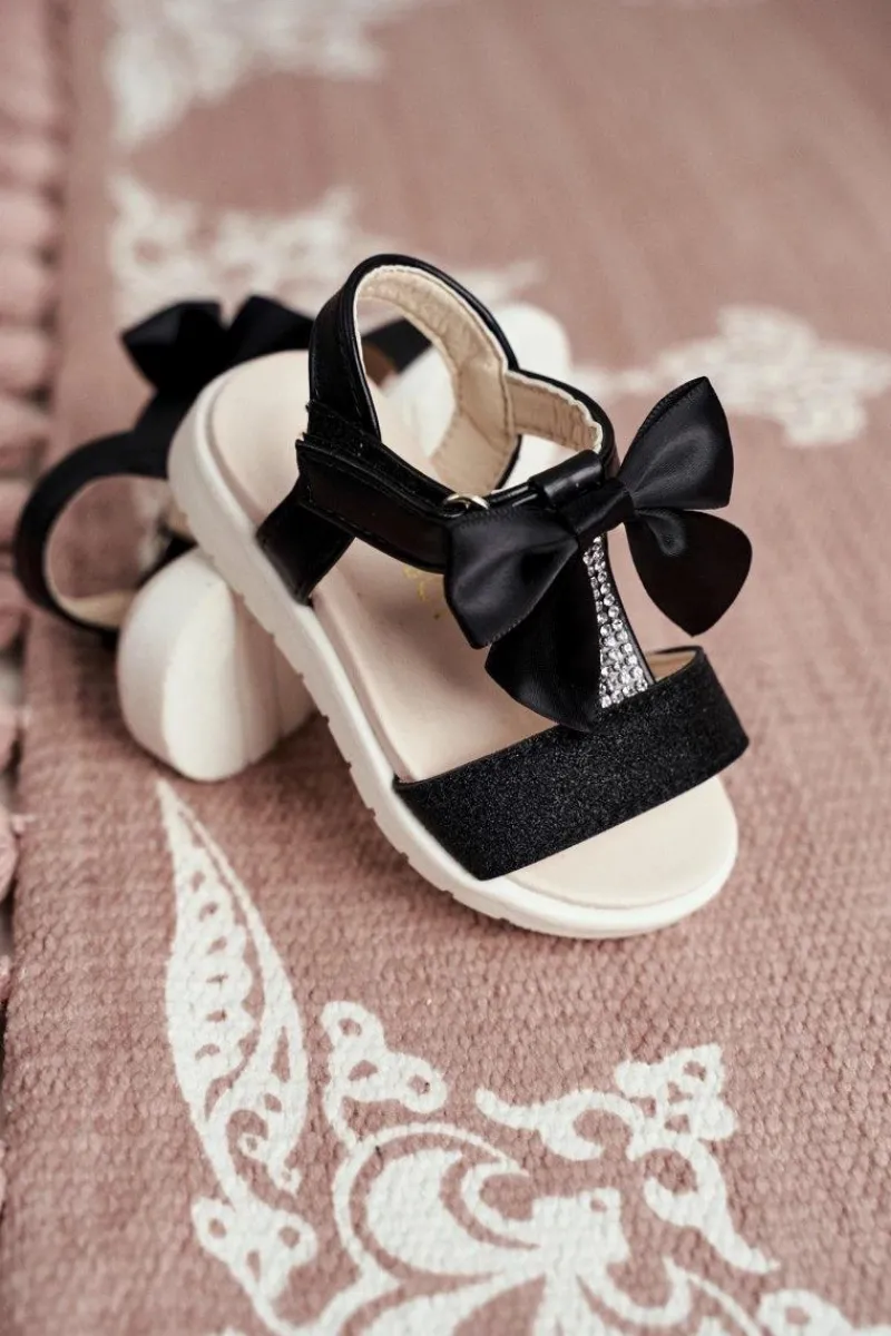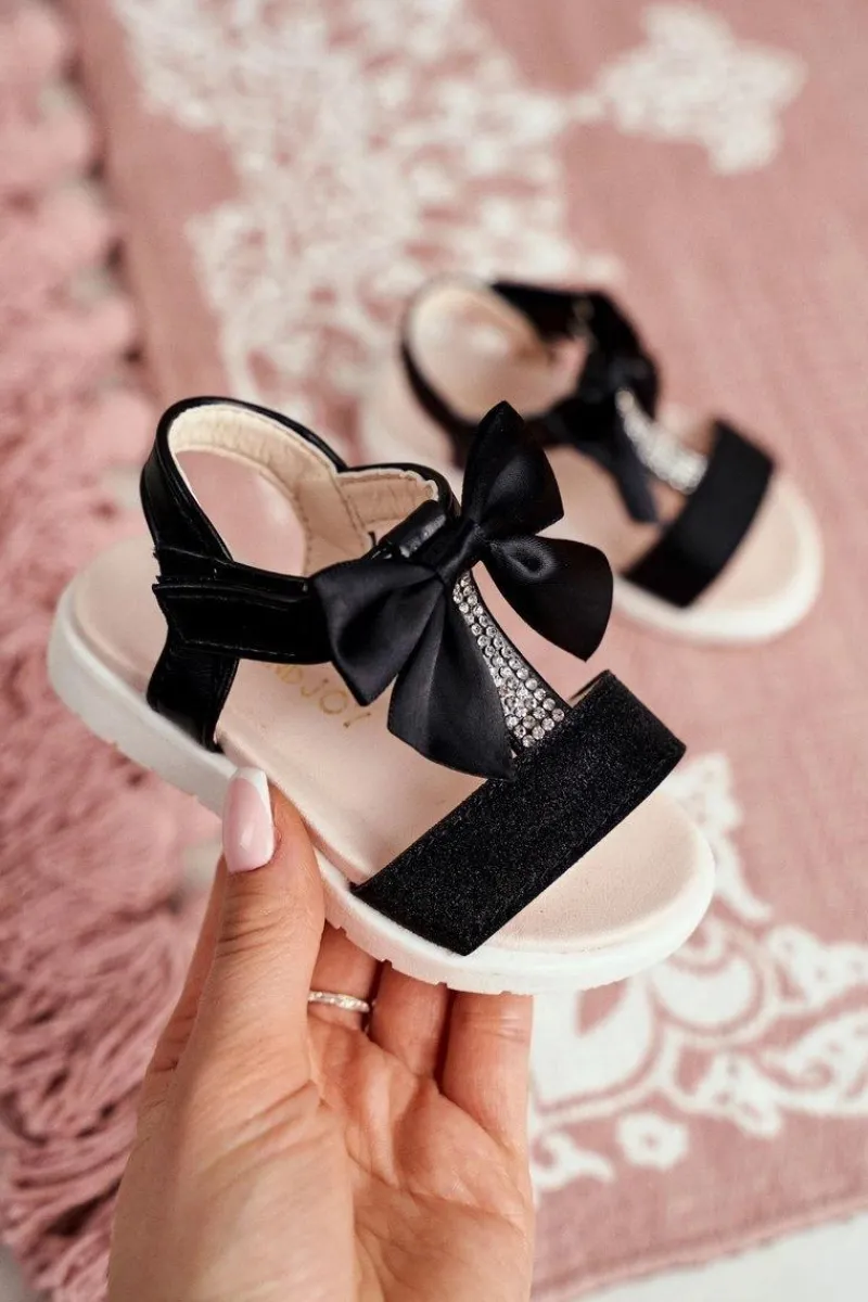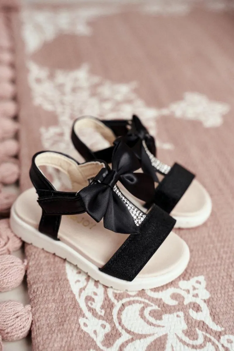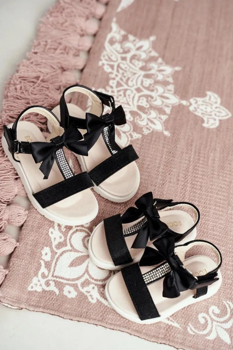 Clearance Boto Dziecięce Sandałki Na Rzepy Dla Dziewczynki Czarne Bella